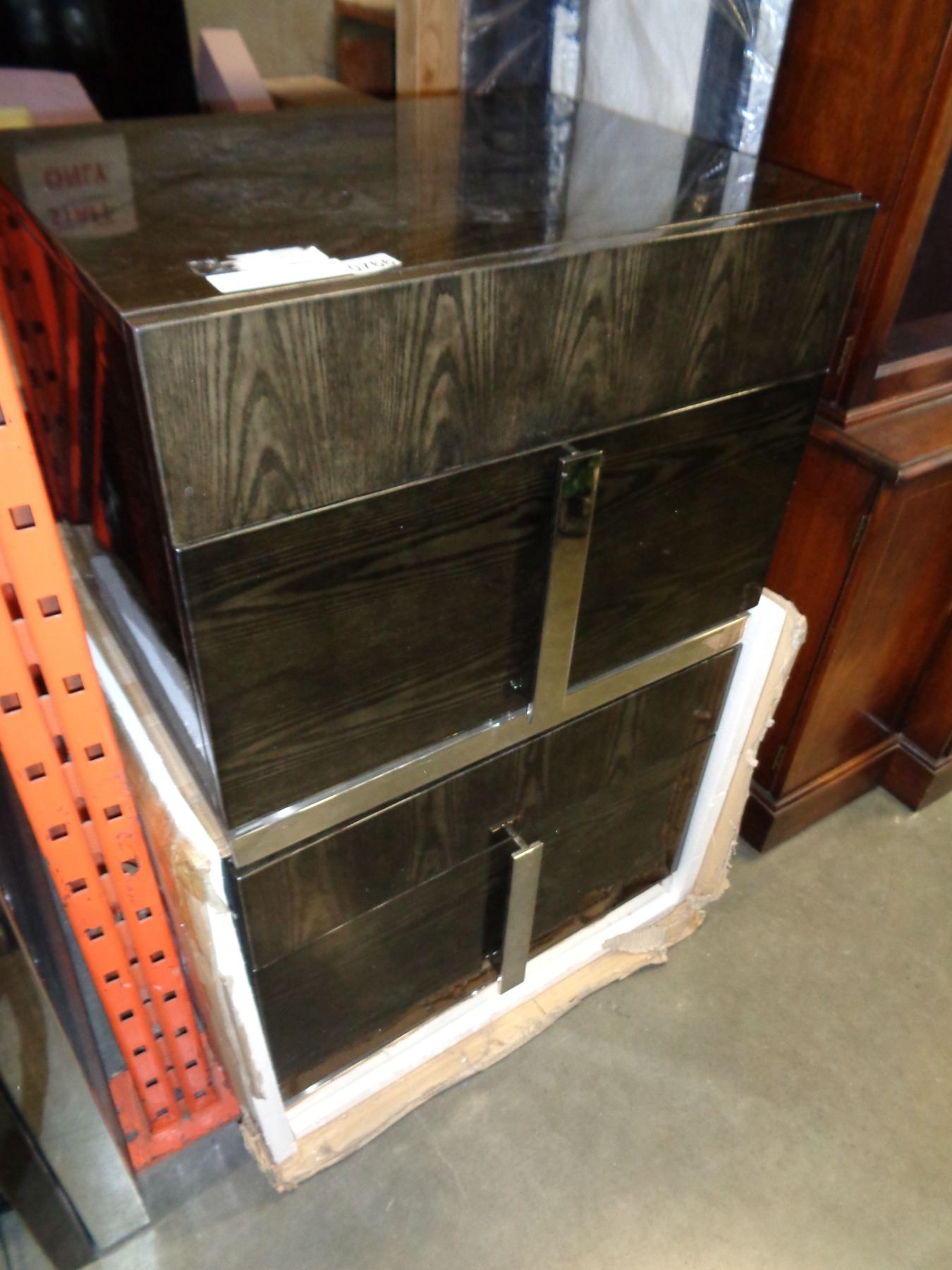 PAIR OF NEW ULTRA MODERN DARK WOOD GRAIN 2 DRAWER NIGHTSTANDS