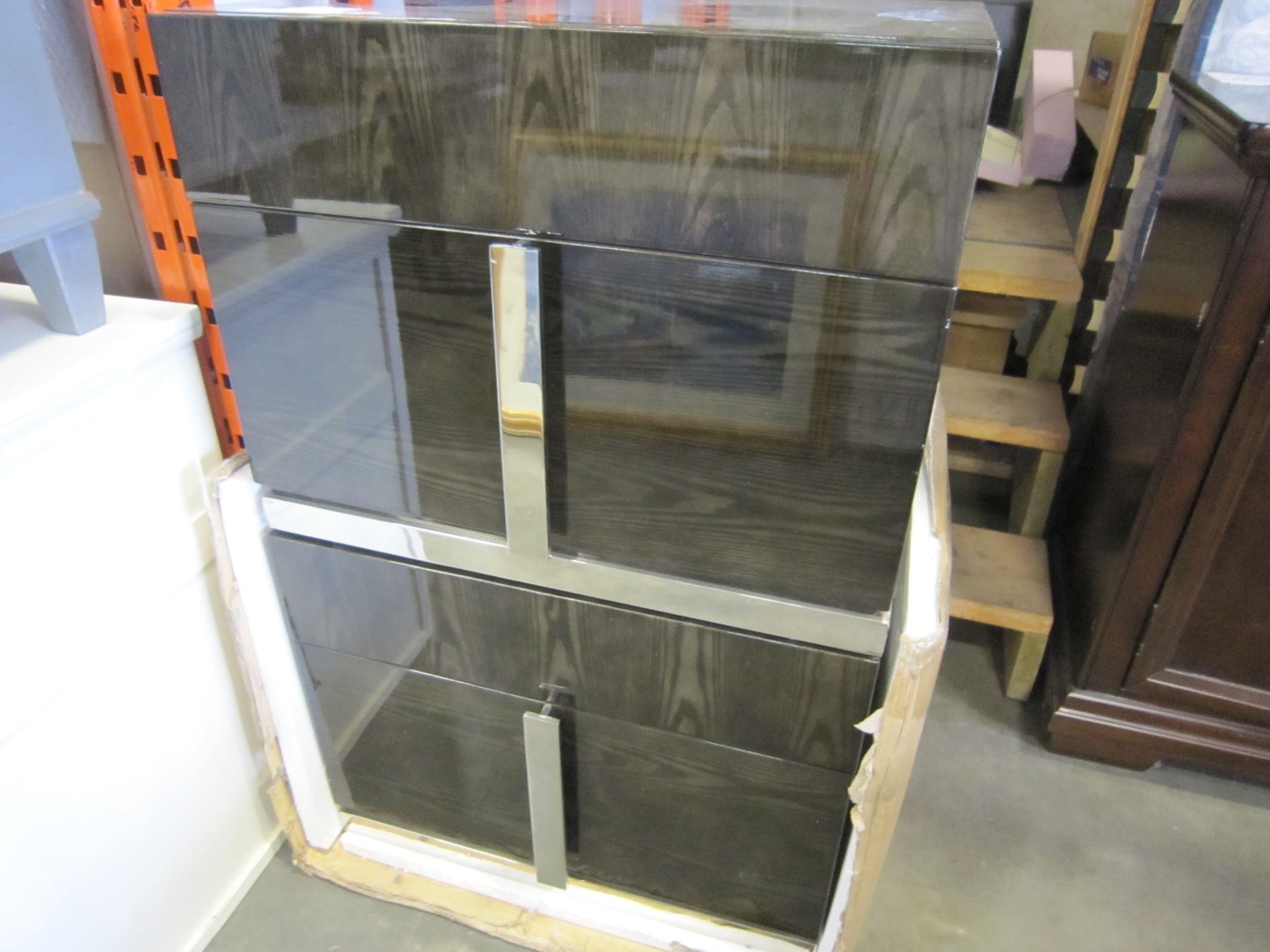 PAIR OF NEW ULTRA MODERN DARK WOOD GRAIN 2 DRAWER NIGHTSTANDS