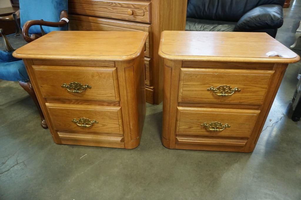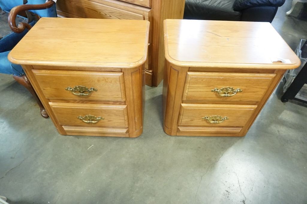 PAIR OF OAK SHERMAG 2 DRAWER NIGHTSTANDS - 2 FOOT WIDE X 16 INCHES DEEP X 23.5 TALL