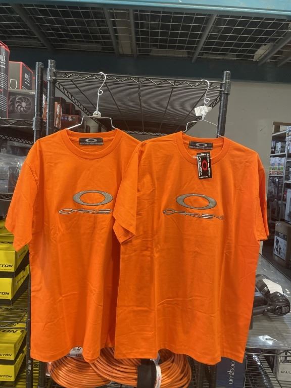 PAIR OF OAKLEY ORANGE T SHIRTS