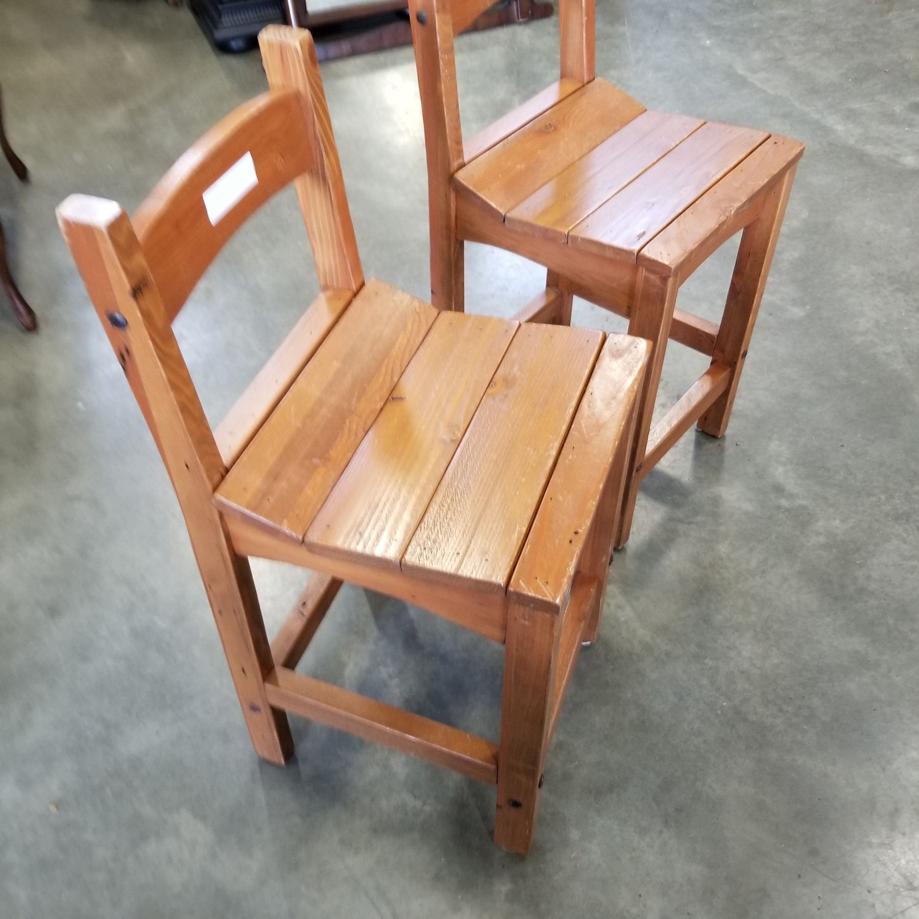 PAIR OF RECLAIMED WOOD WORKS PINE STOOLS