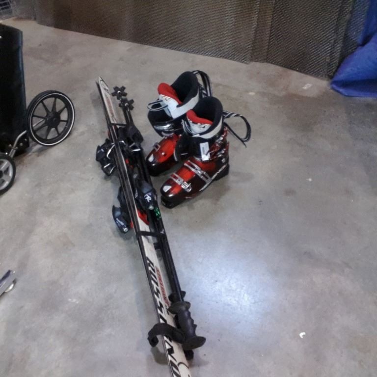 PAIR OF ROSSIGNOL SKIS AND BOOTS WITH POLES
