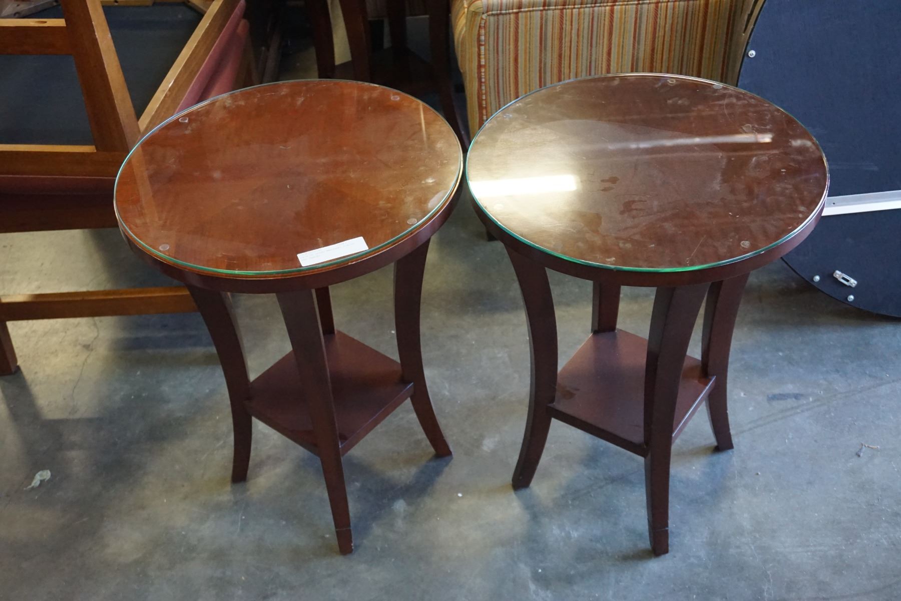 PAIR OF ROUND MAHOGANY FINISH END TABLES