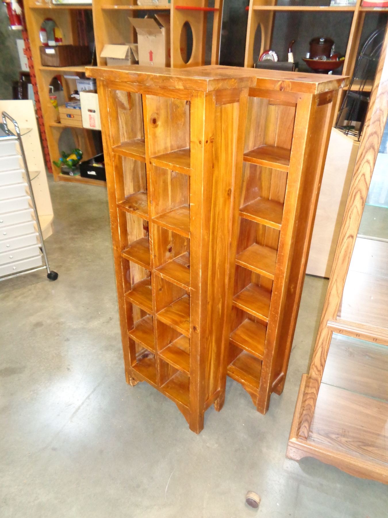 PAIR OF RUSTIC LOOK CUBICAL SHELVES