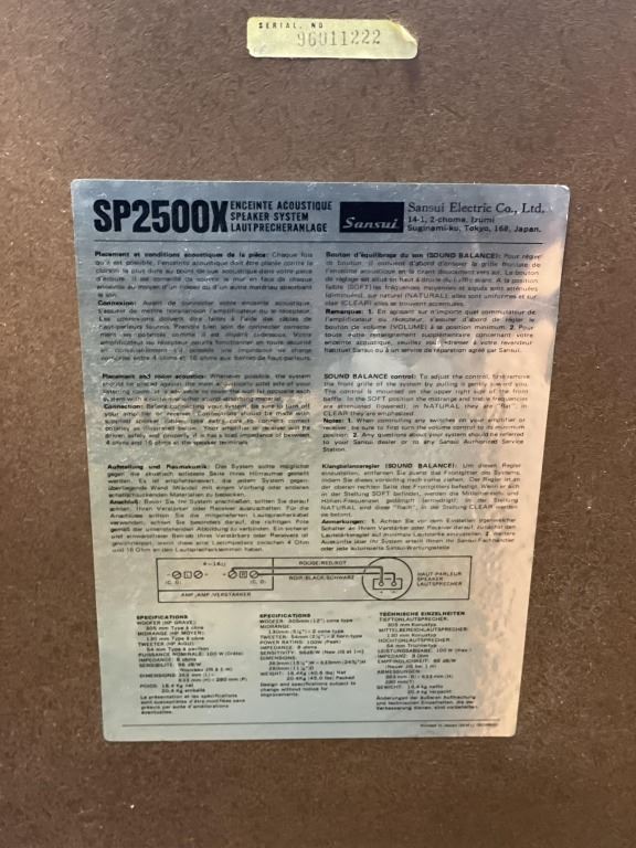 PAIR OF SO2500Z SANSUI SPEAKERS