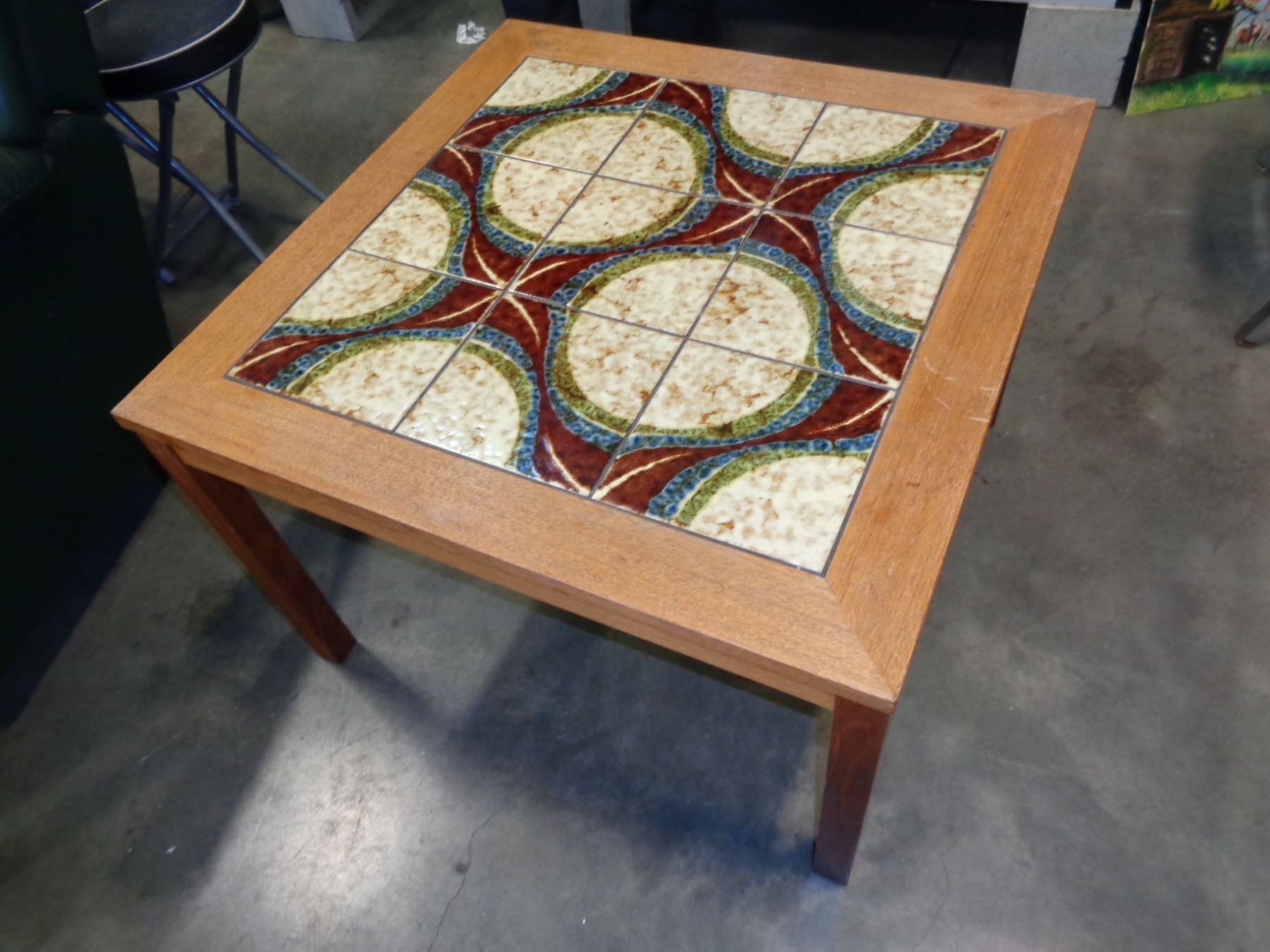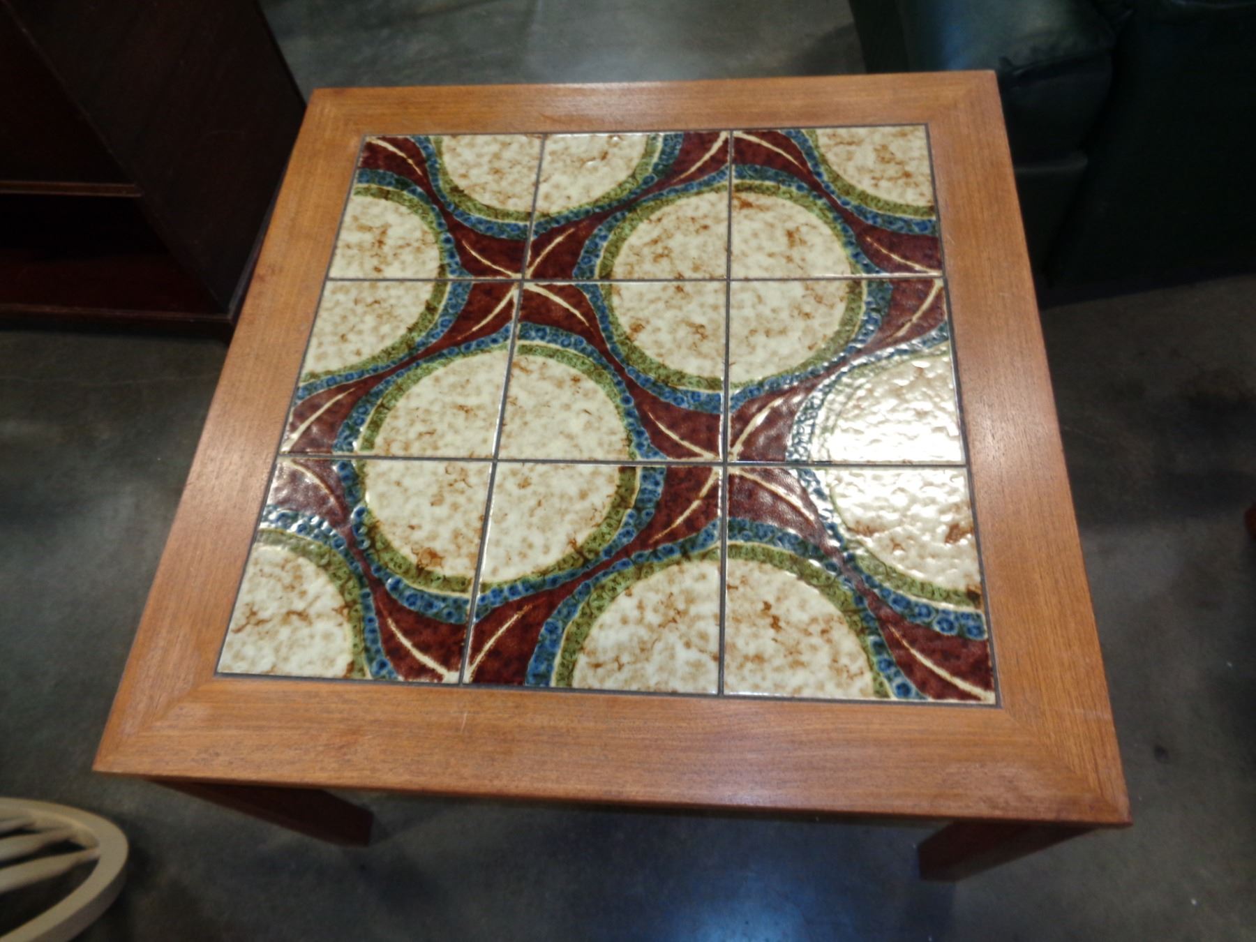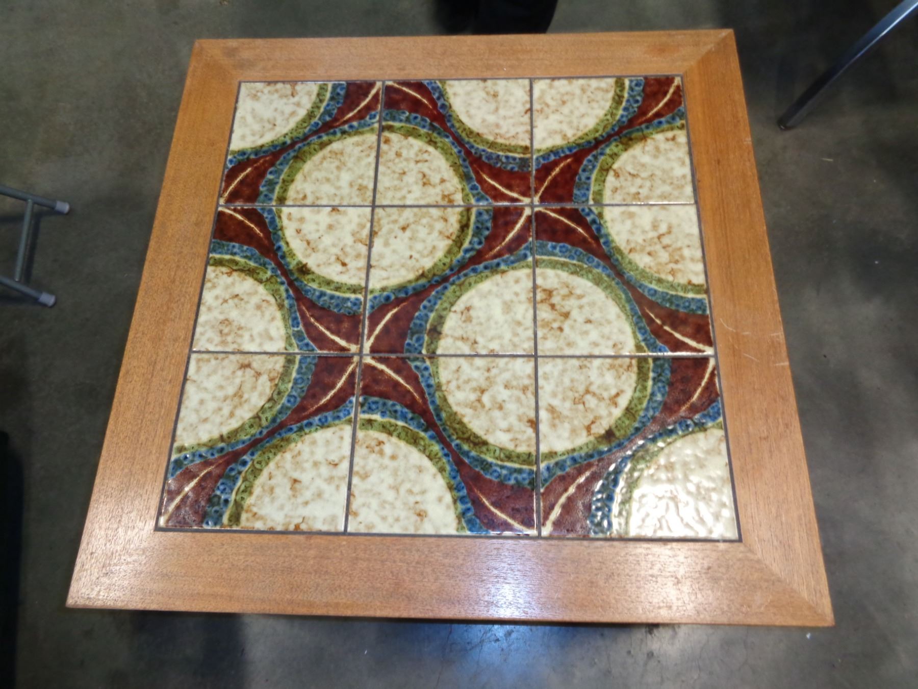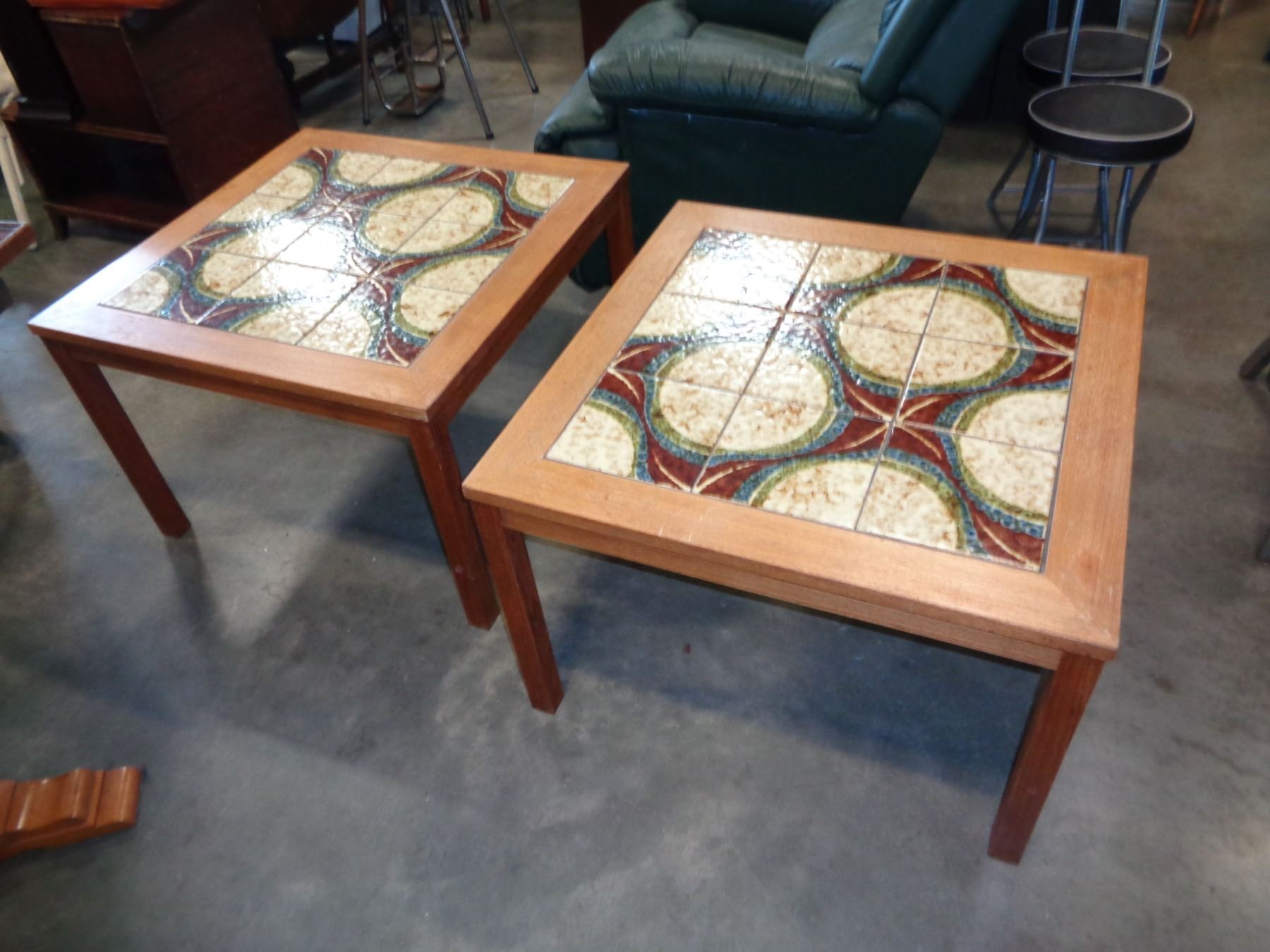 PAIR OF SQUARE TILE TOP ENDTABLES
