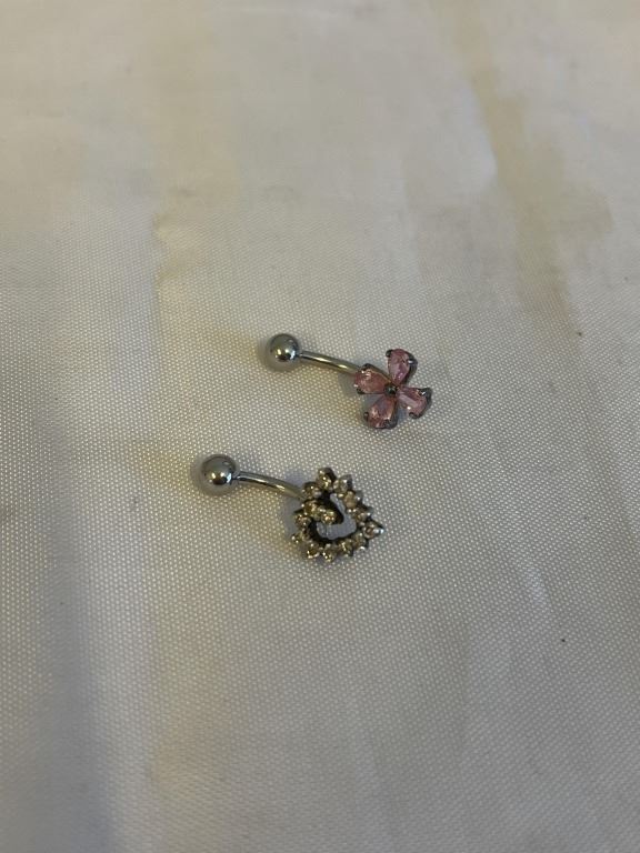 PAIR OF STERLING SILVER BELLY BUTTON RINGS MARKED 925