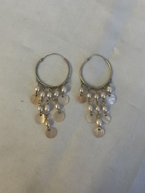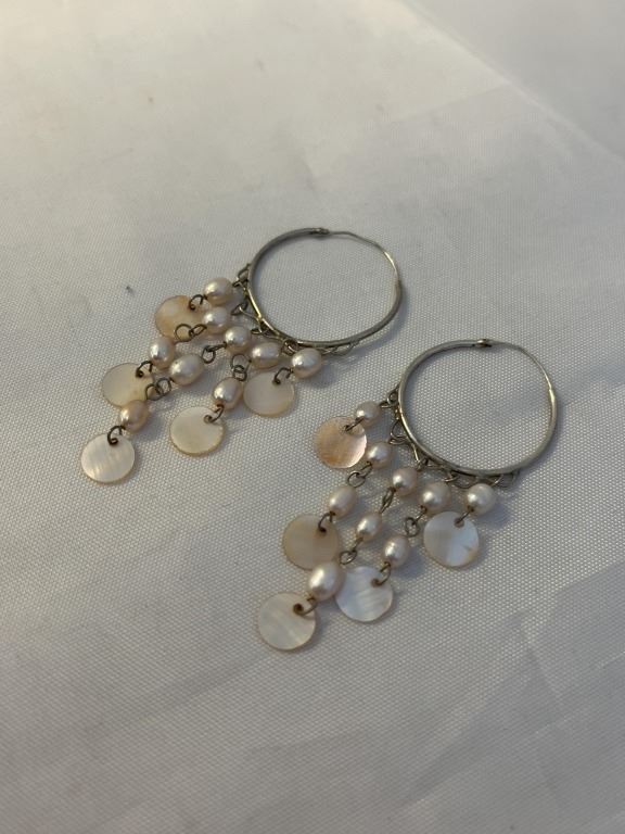 PAIR OF STERLING SILVER W/ DANGLING GENUINE PEARL EARRINGS