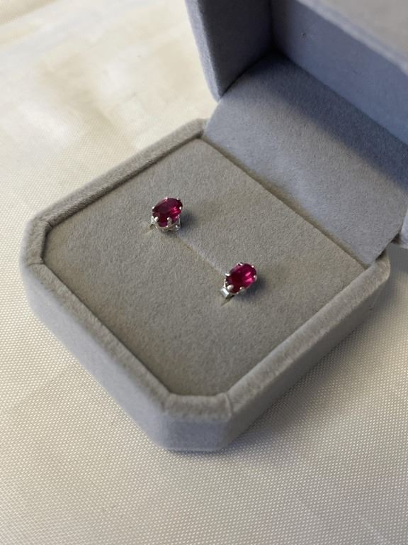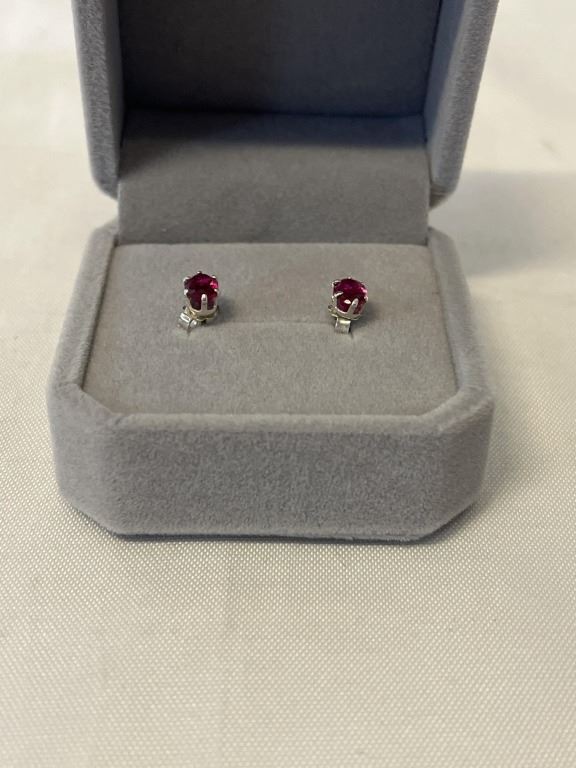PAIR OF STERLING SILVER W/ RUBY STONES EARRINGS MARKED 925