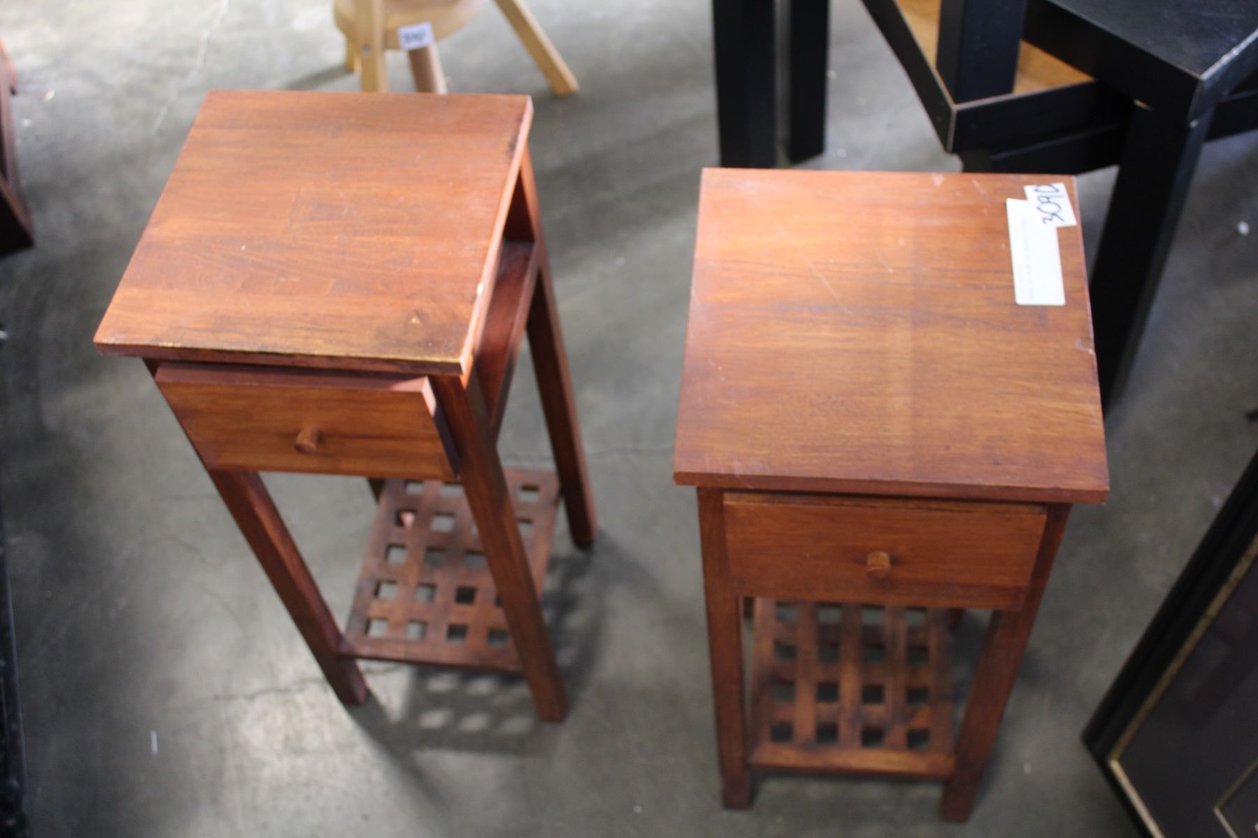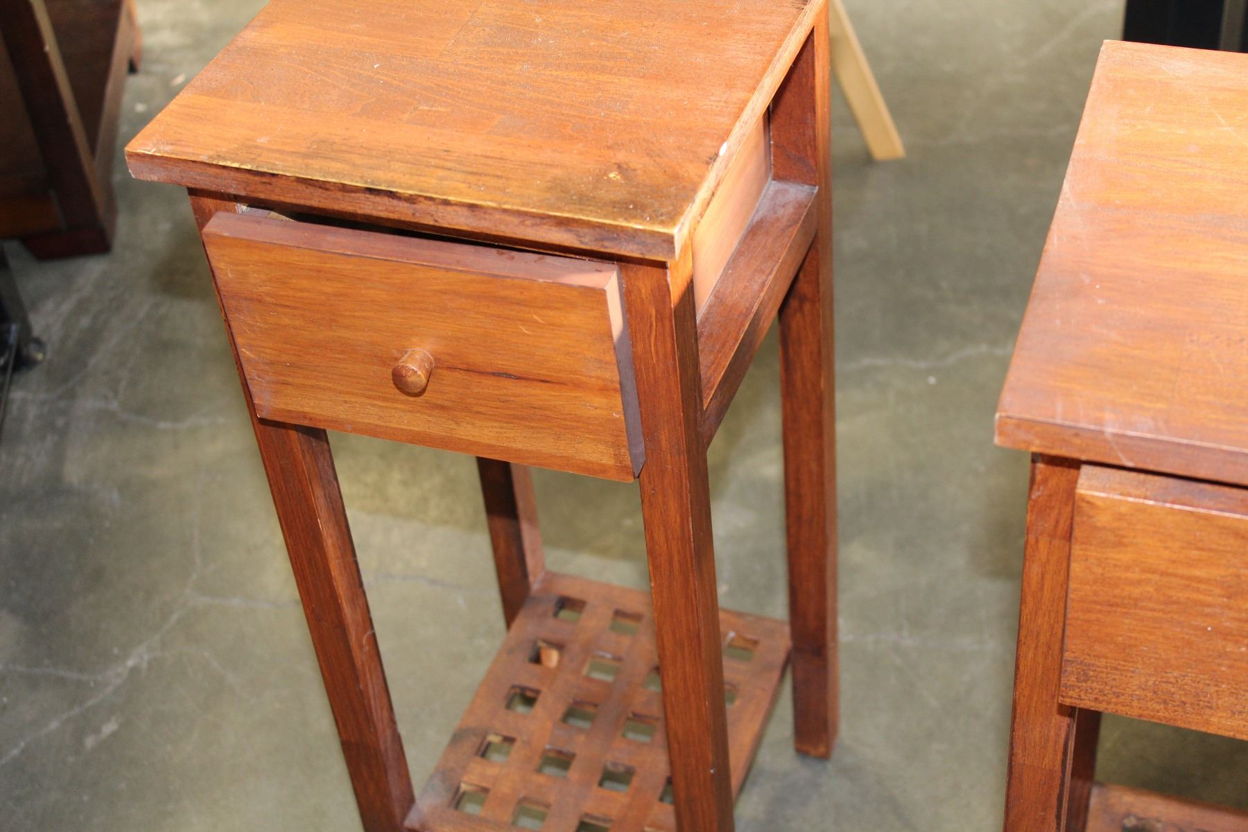 PAIR OF TEAK ONE DRAWER STANDS