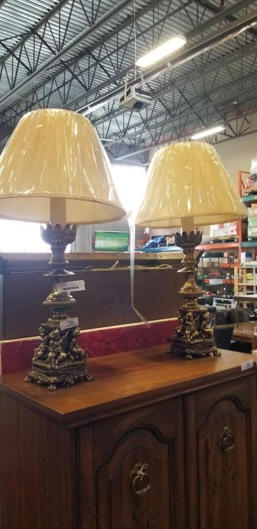 PAIR OF VINTAGE TABLE LAMPS W/ GOLD TONED BASE