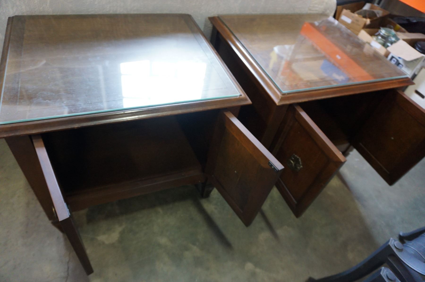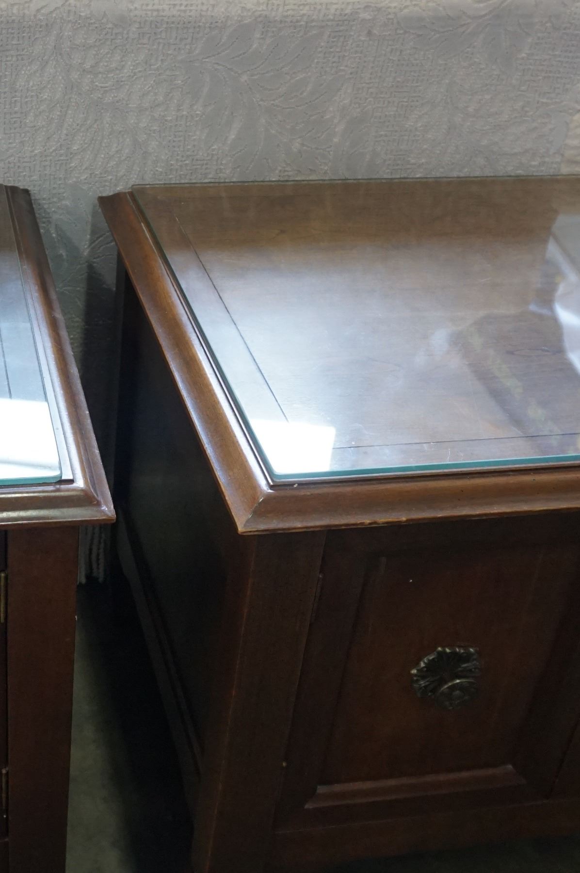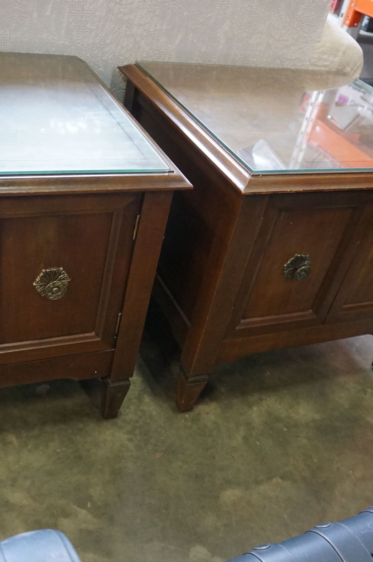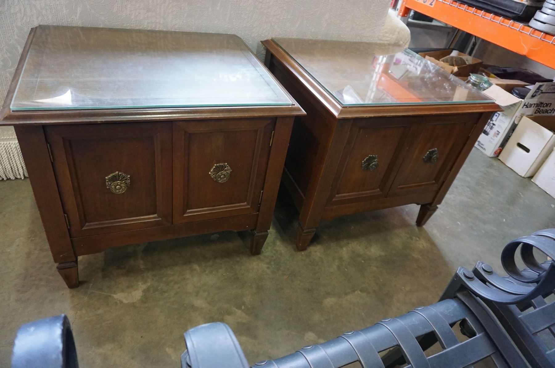 PAIR OF WALNUT 2 DOOR NIGHTSTANDS W/ GLASS