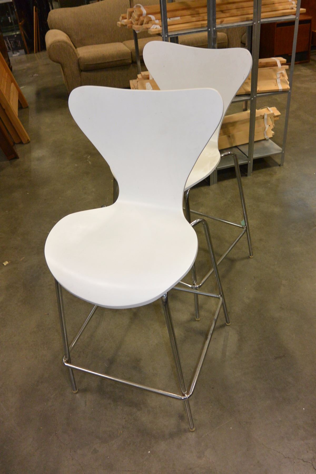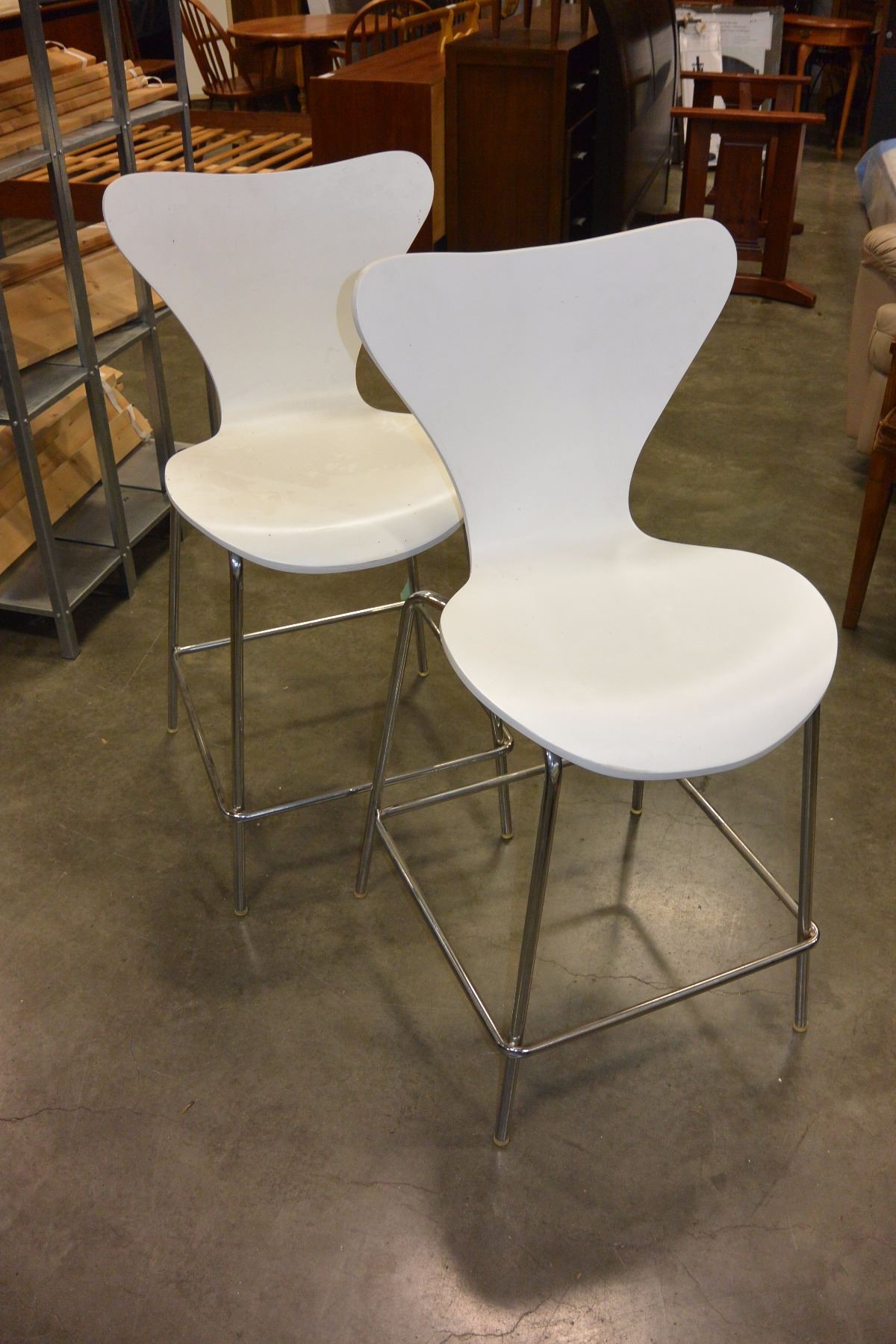 PAIR OF WHITE AND CHROME BARSTOOLS