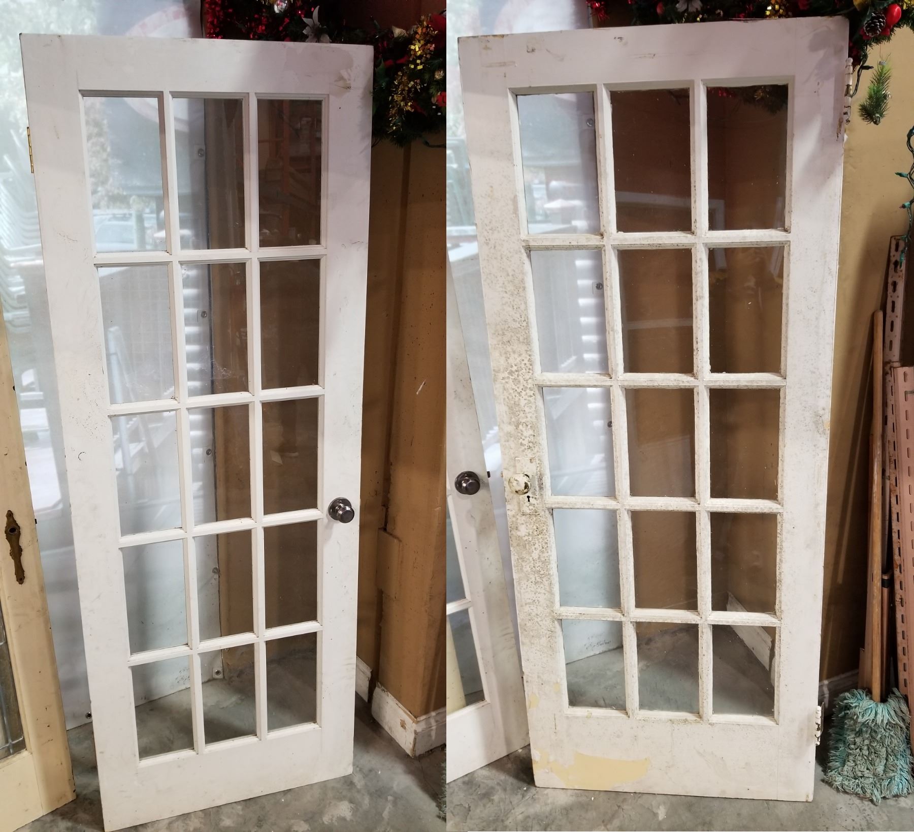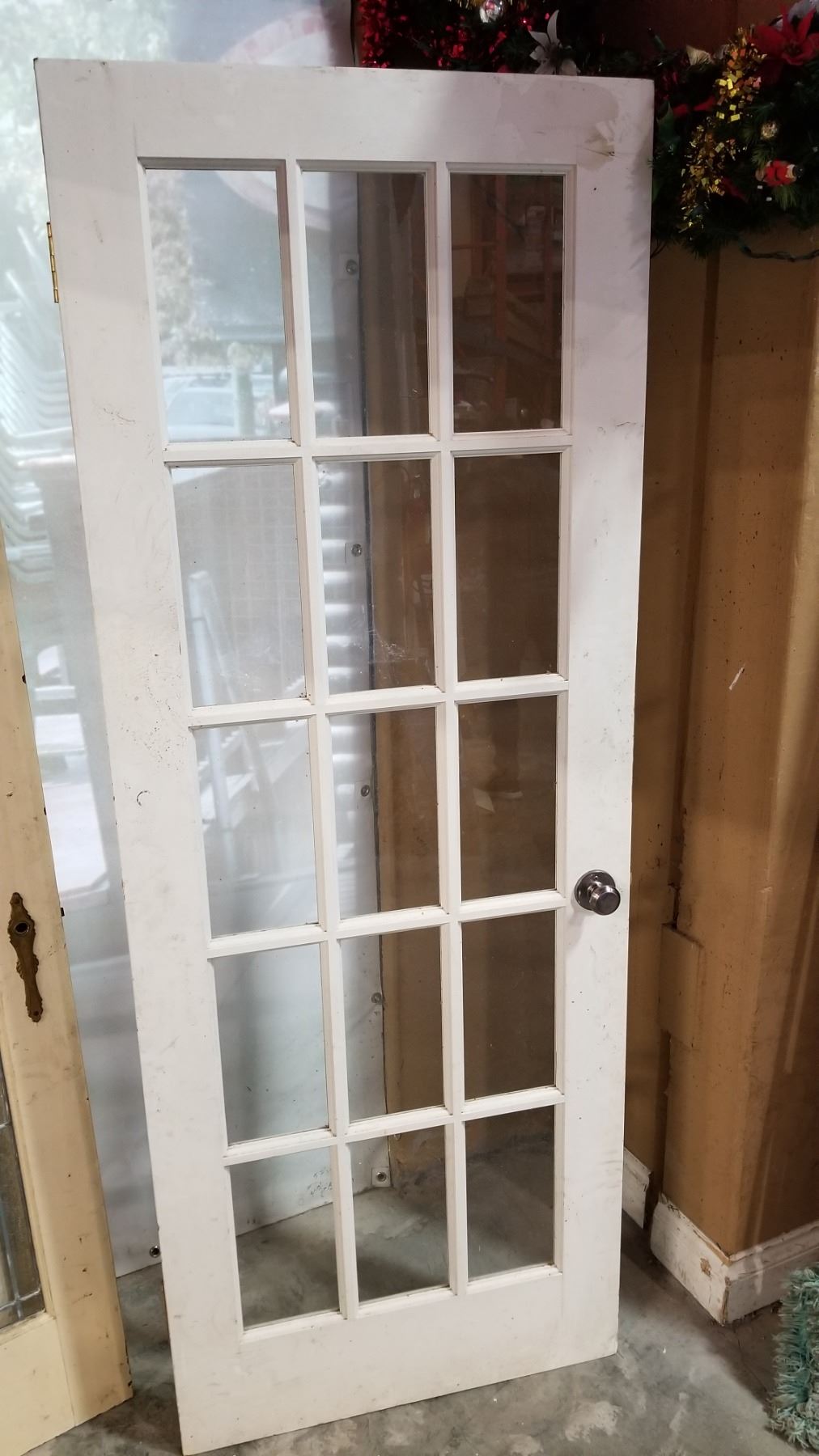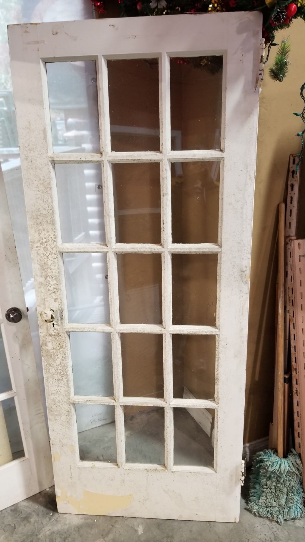 PAIR OF WHITE ANTIQUE 15 PANE WOOD DOORS