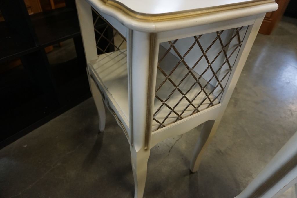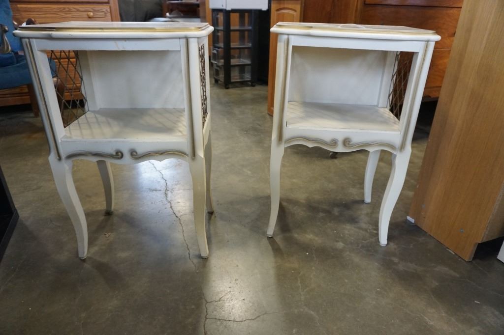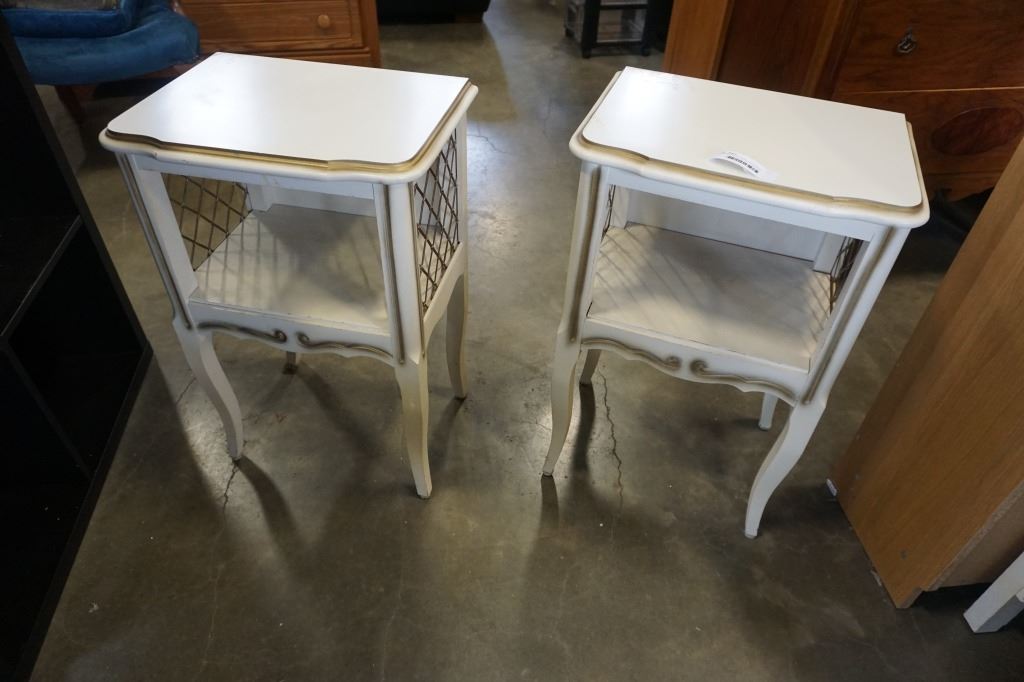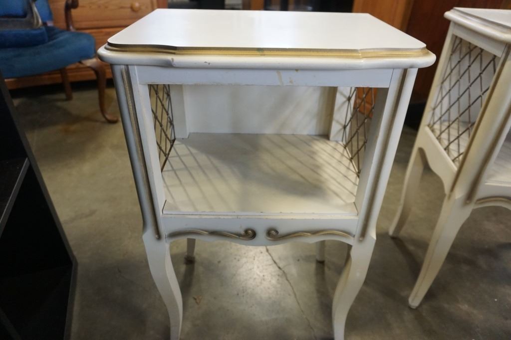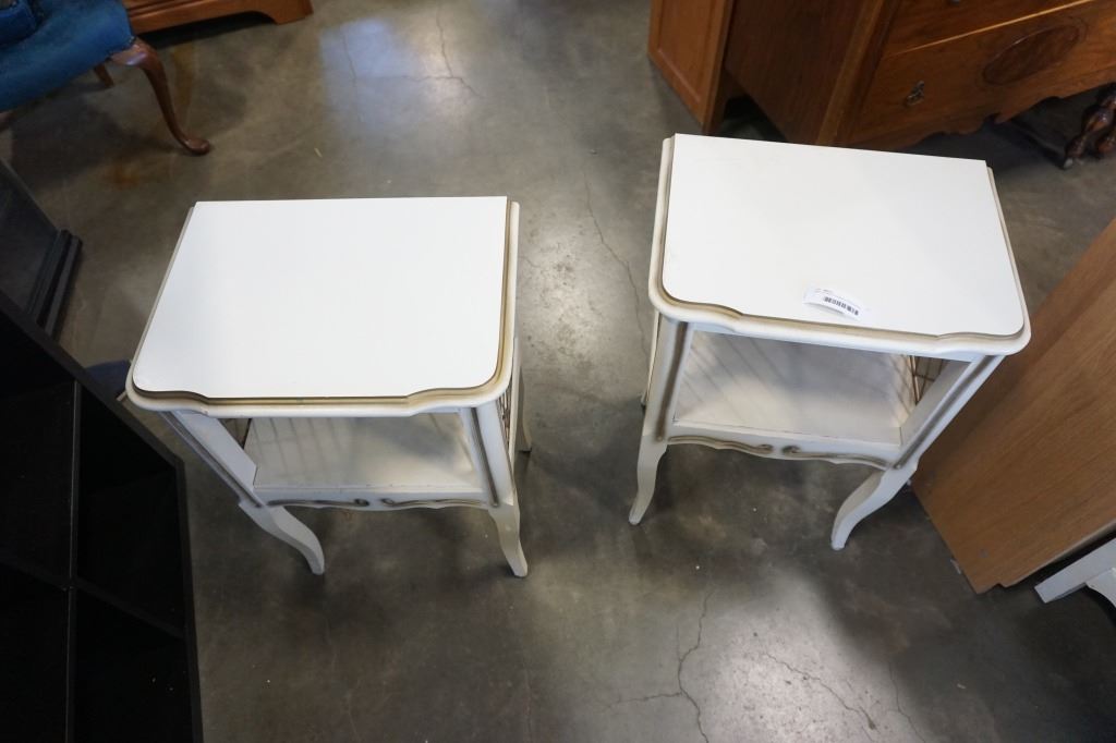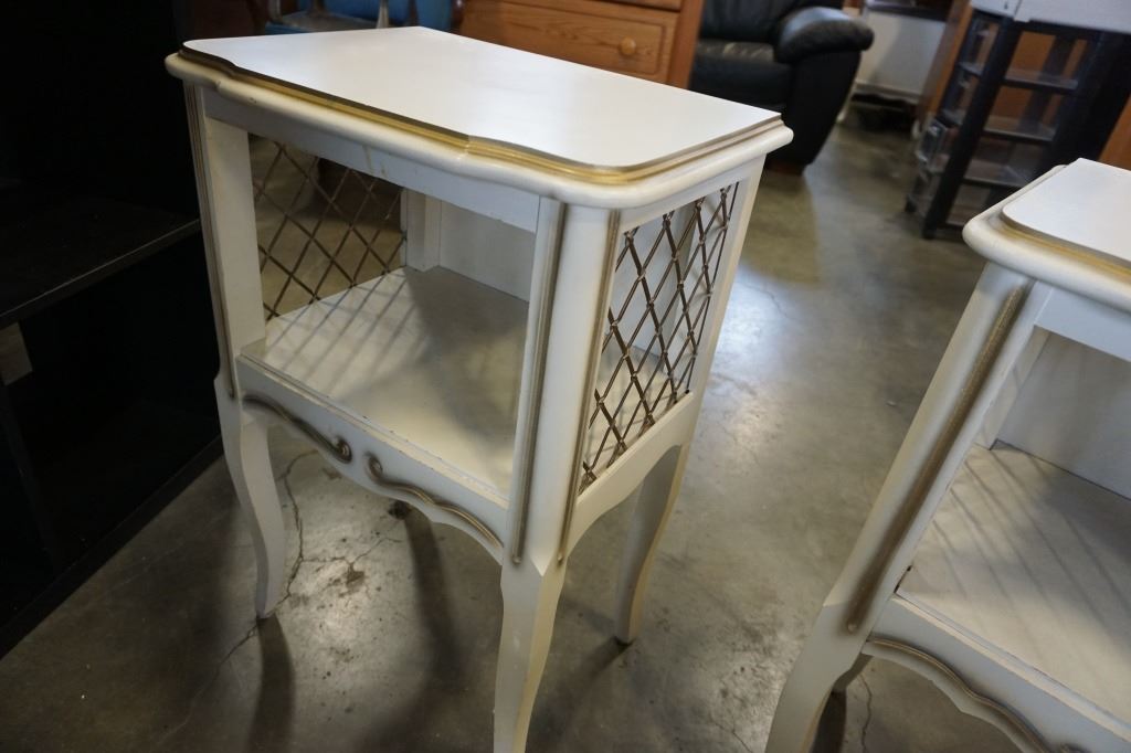 PAIR OF WHITE FRENCH PROVINCIAL ENDTABLES - 18 INCHES WIDE X 13 DEEP X 27 TALL