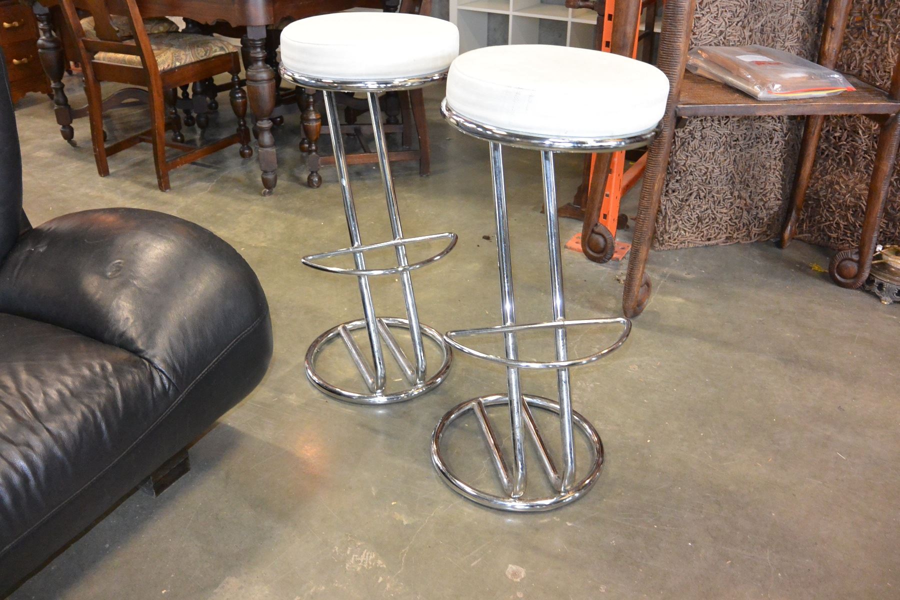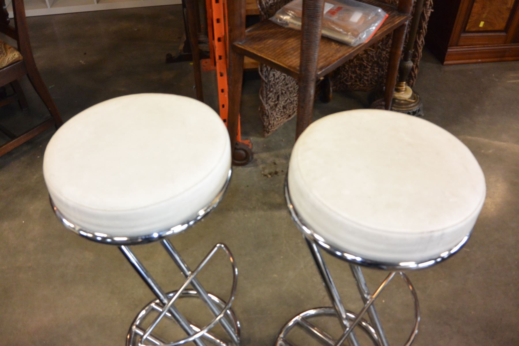 PAIR OF WHITE LEATHER AND CHROME STOOLS