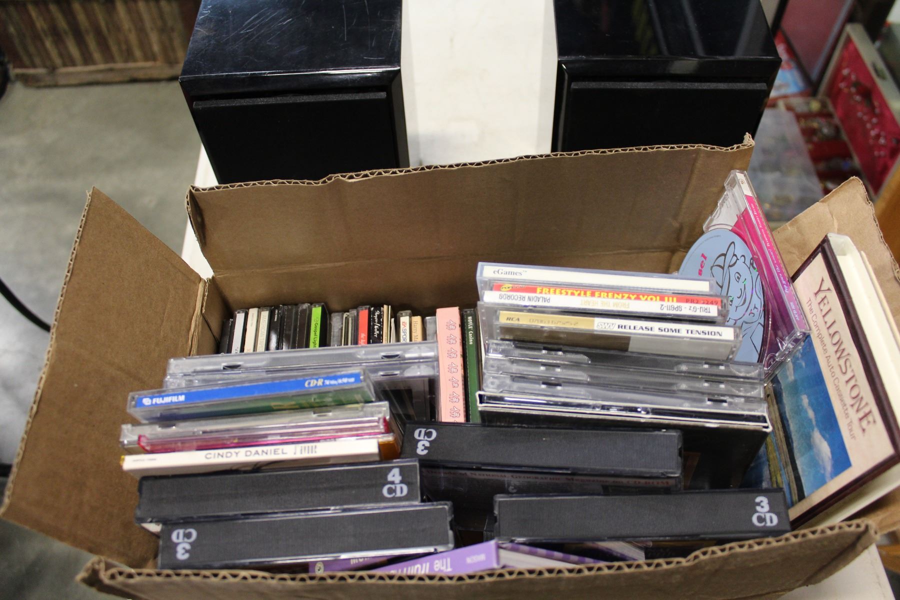 PAIR OF YAMAHA BOOKSHELF STEREO SPEAKERS AND CDS
