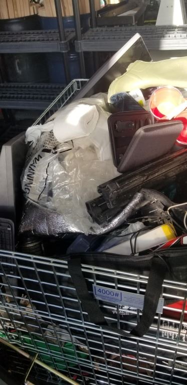 PALLET OF ASSORTED GOODS, CONTENTS OF REPOSESSSED VEHICLES, BIN NOT INCLUDED