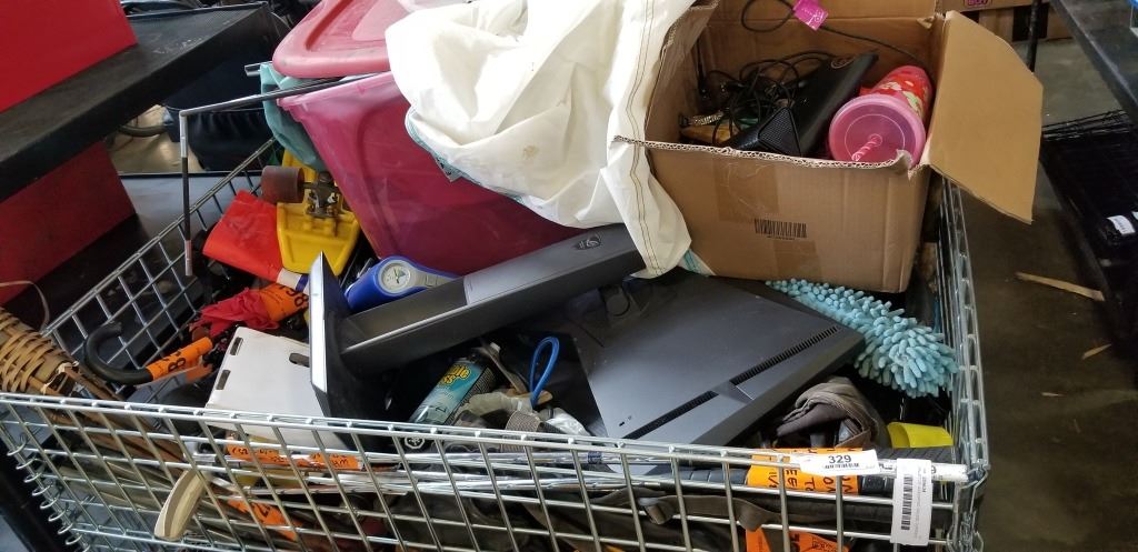 PALLET OF ASSORTED GOODS, CONTENTS OF REPOSESSSED VEHICLES, BIN NOT INCLUDED