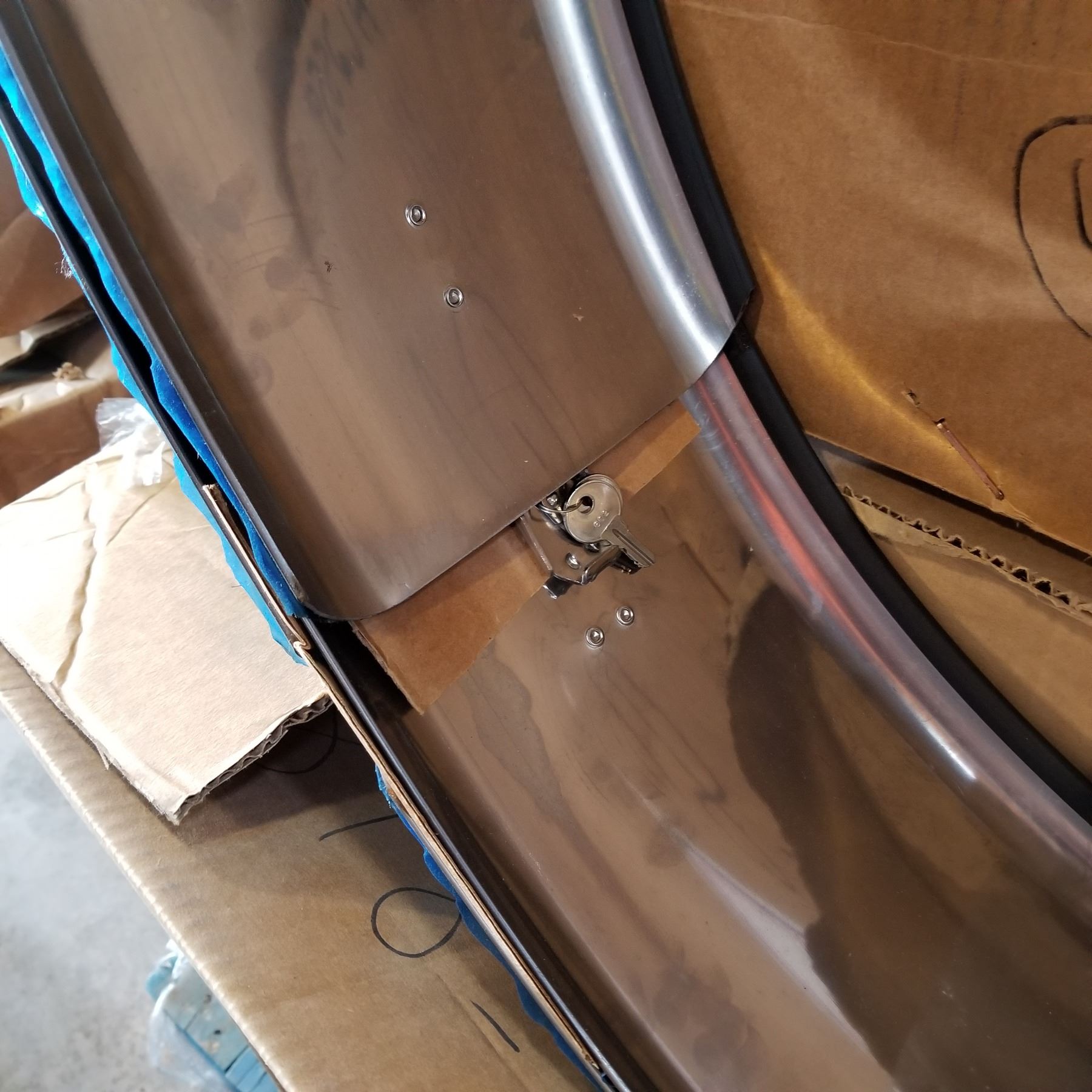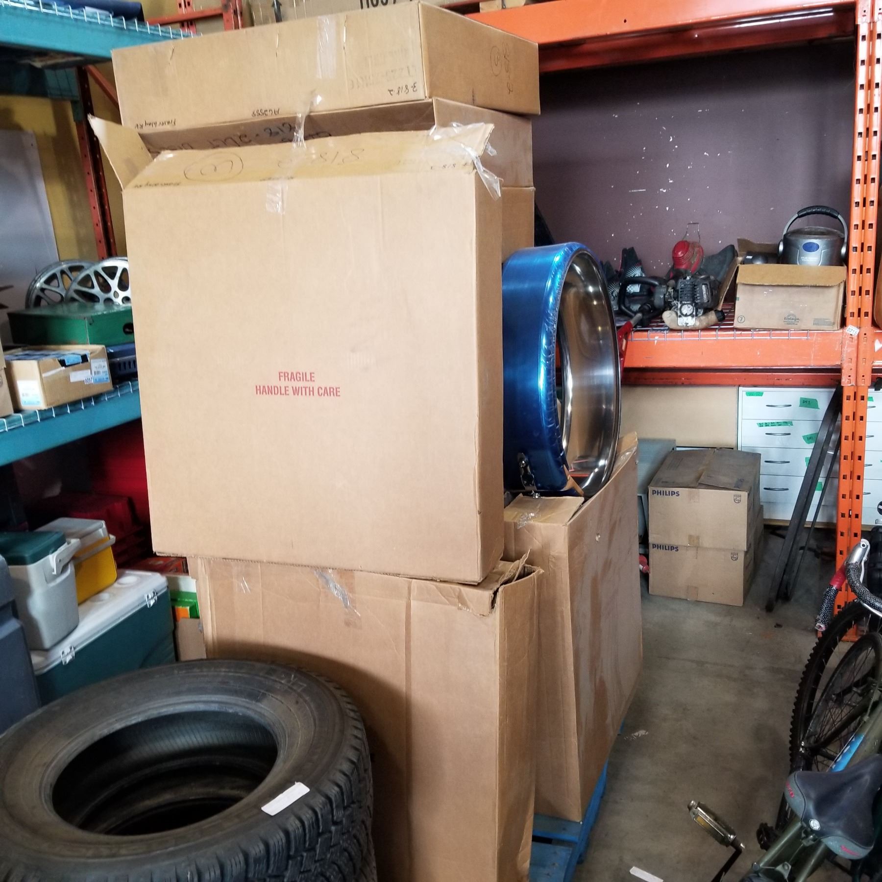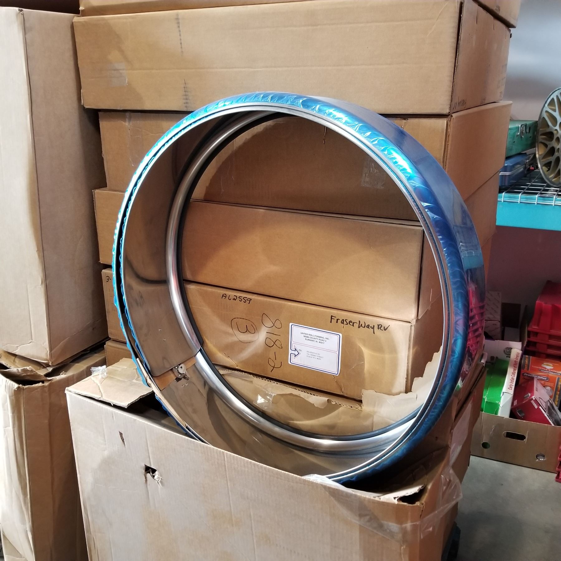 PALLET OF LOCKING STAINLESS RV SPARE TIRE COVERS W/KEYS