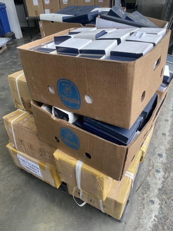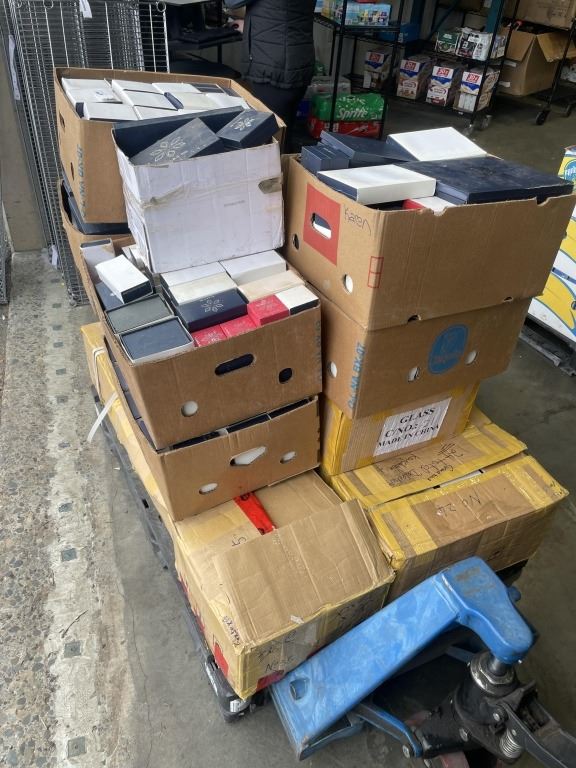 PALLET OF OF GLASS ETCHINGS IN CASE - SOME USED, SOME BLANK