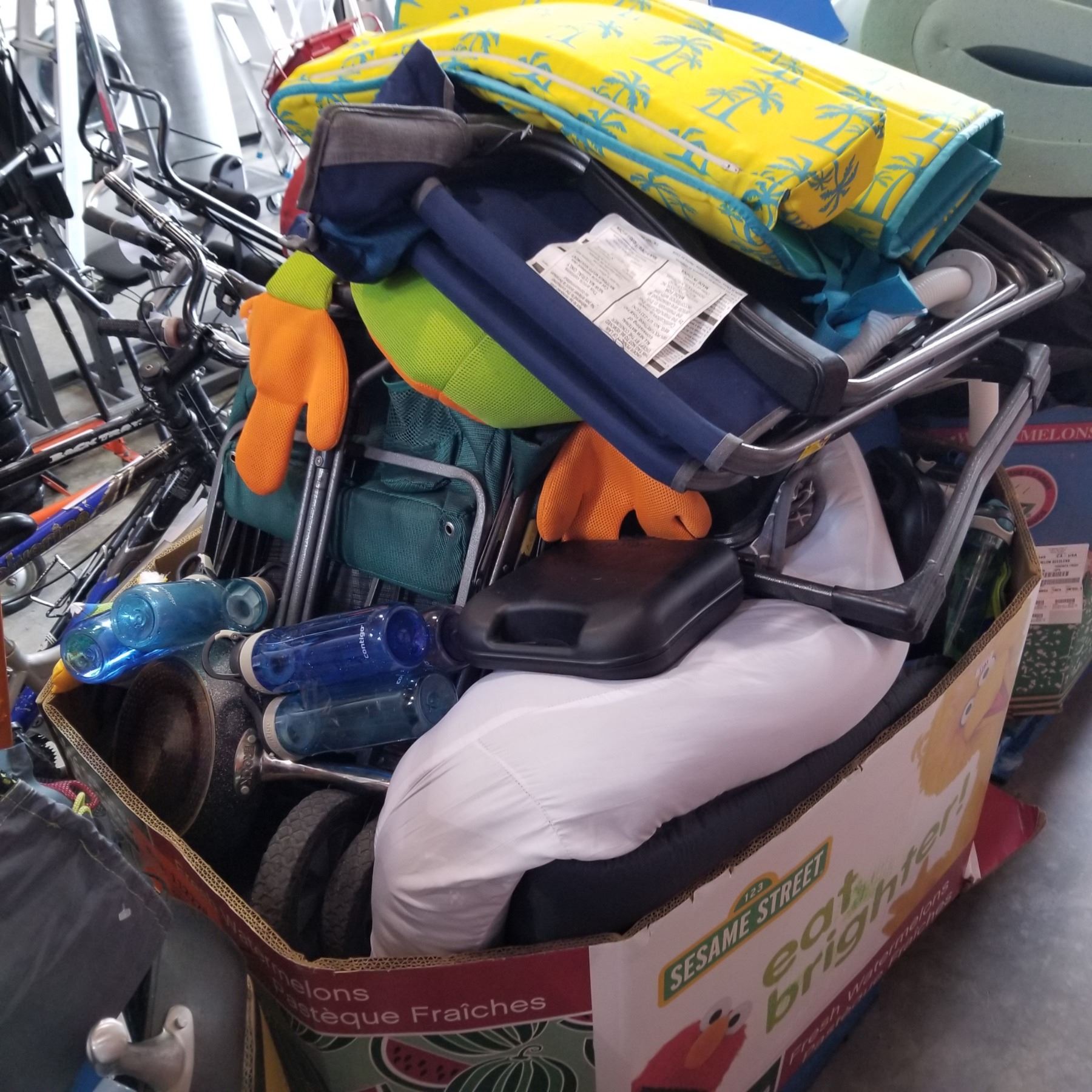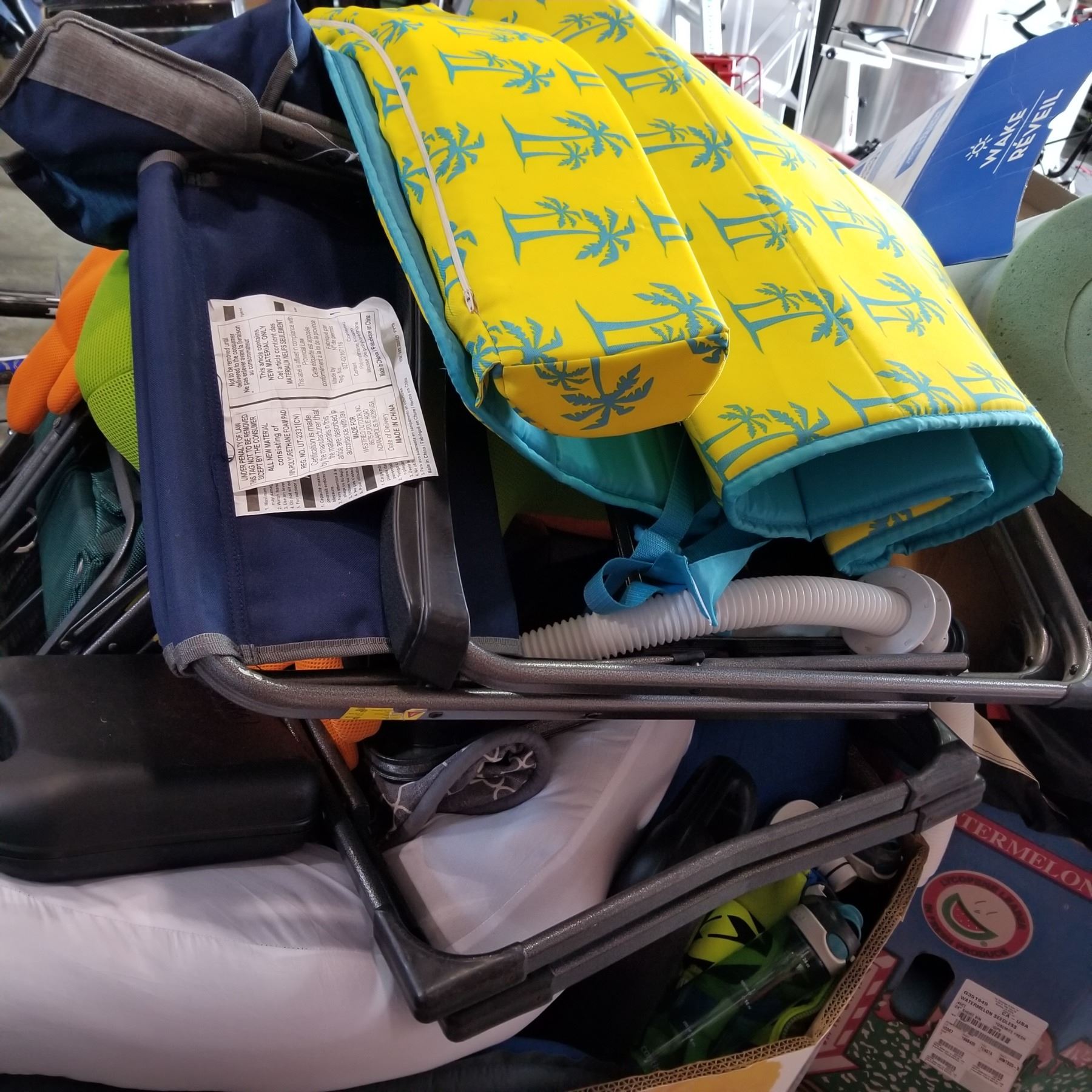 PALLET OF RETURNED CAMP ITEMS, BEACH ITEMS, ETC