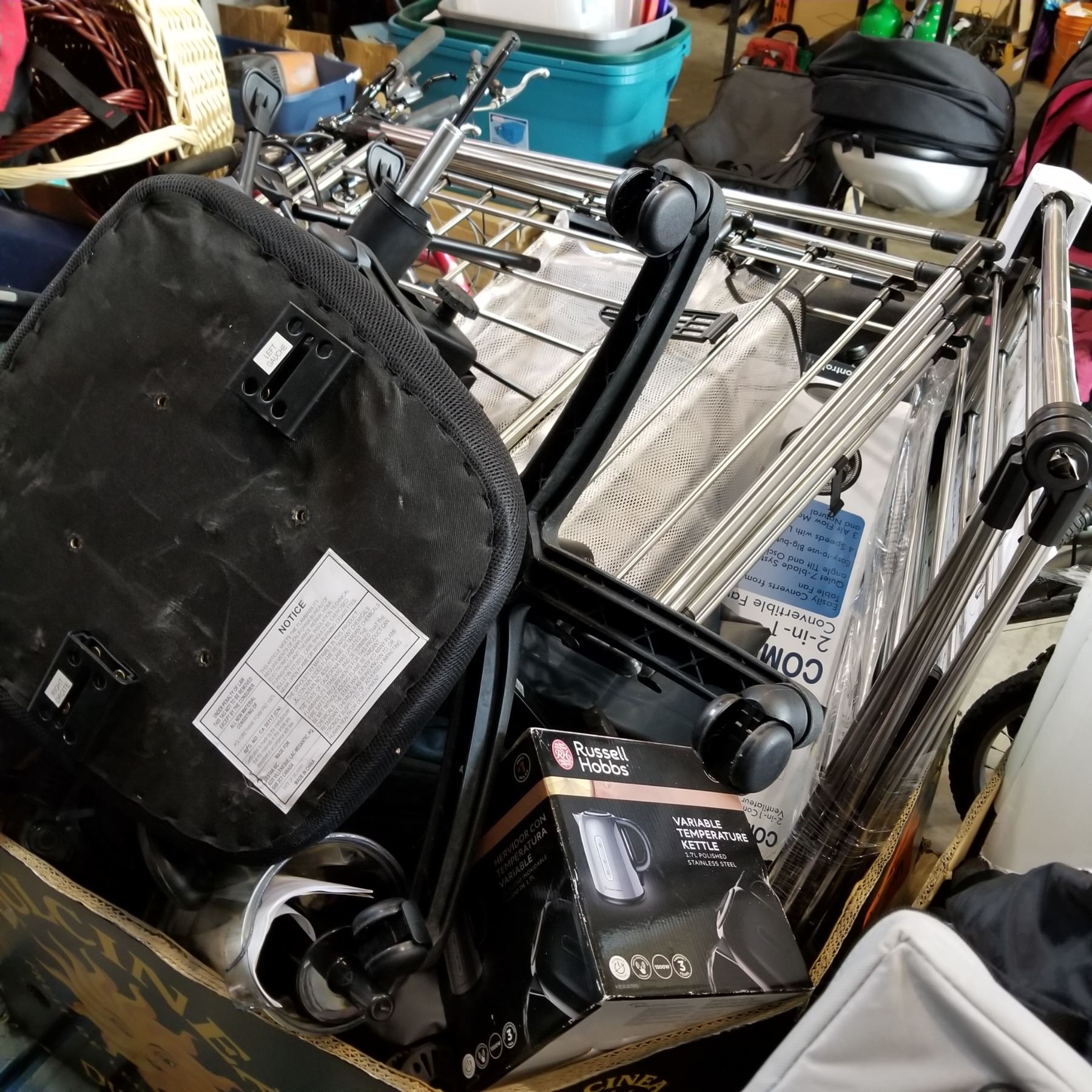 PALLET OF RETURNED DRYING RACKS, OFFICE CHAIR, ETC