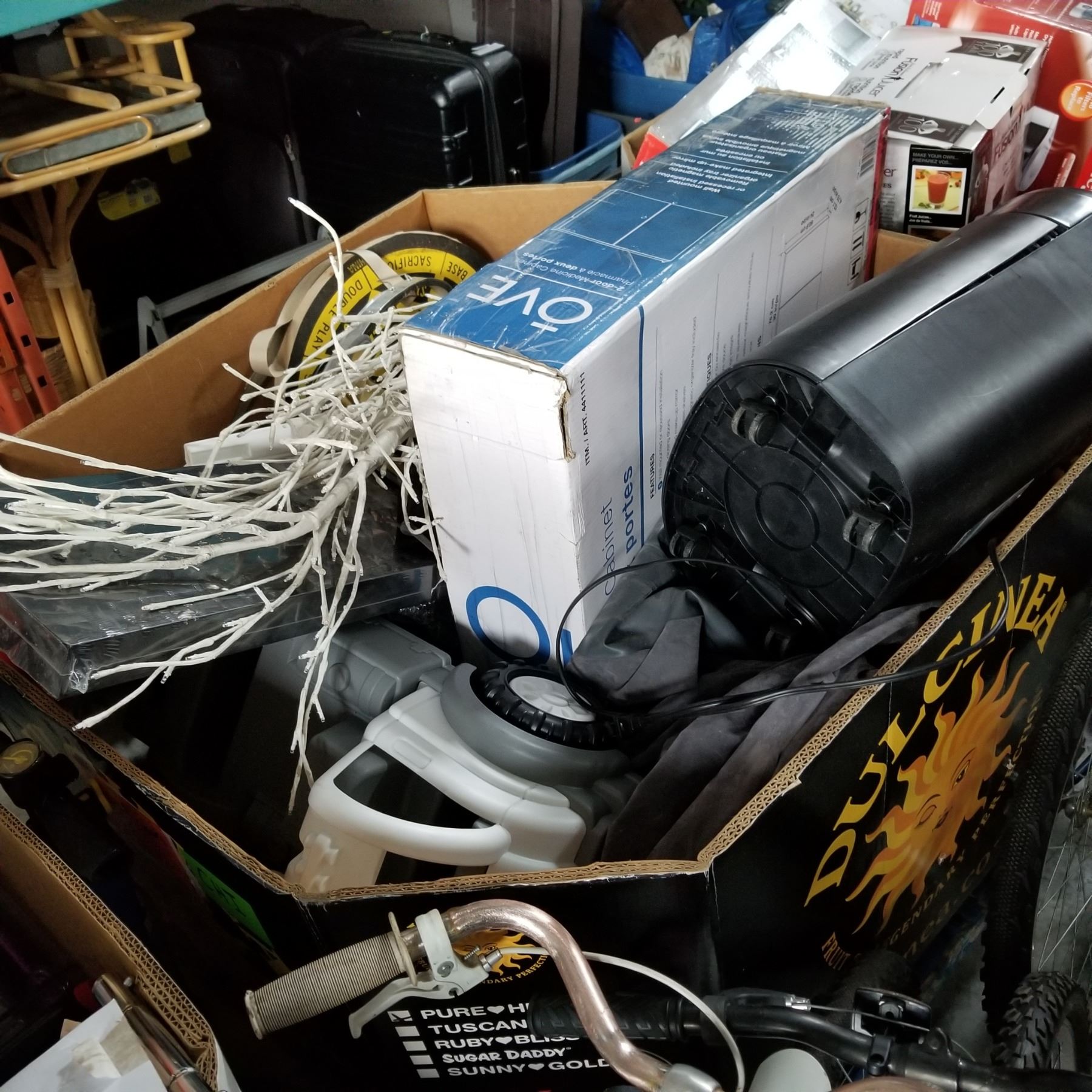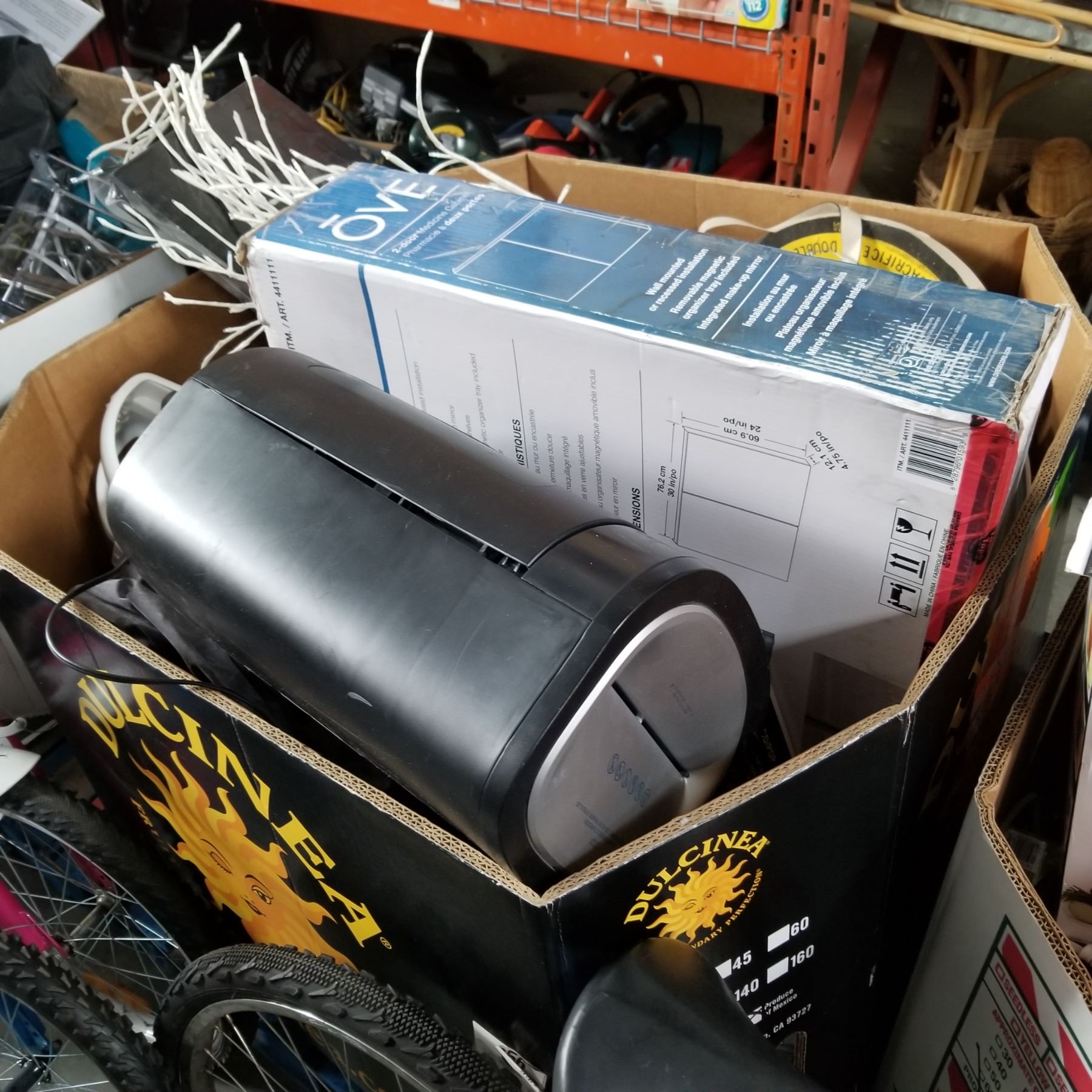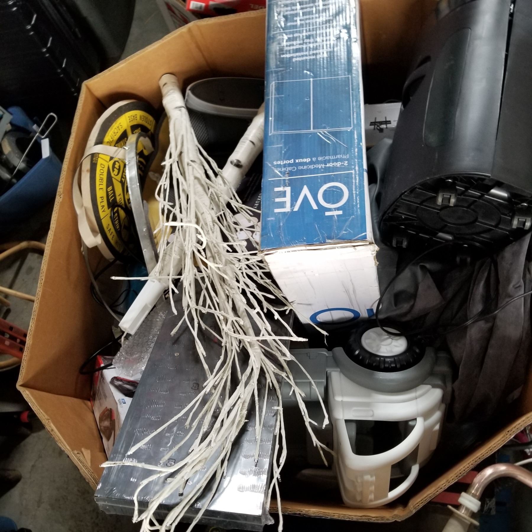 PALLET OF RETURNED ITEMS, MEDICINE CABINET, PAPER SHREDDER