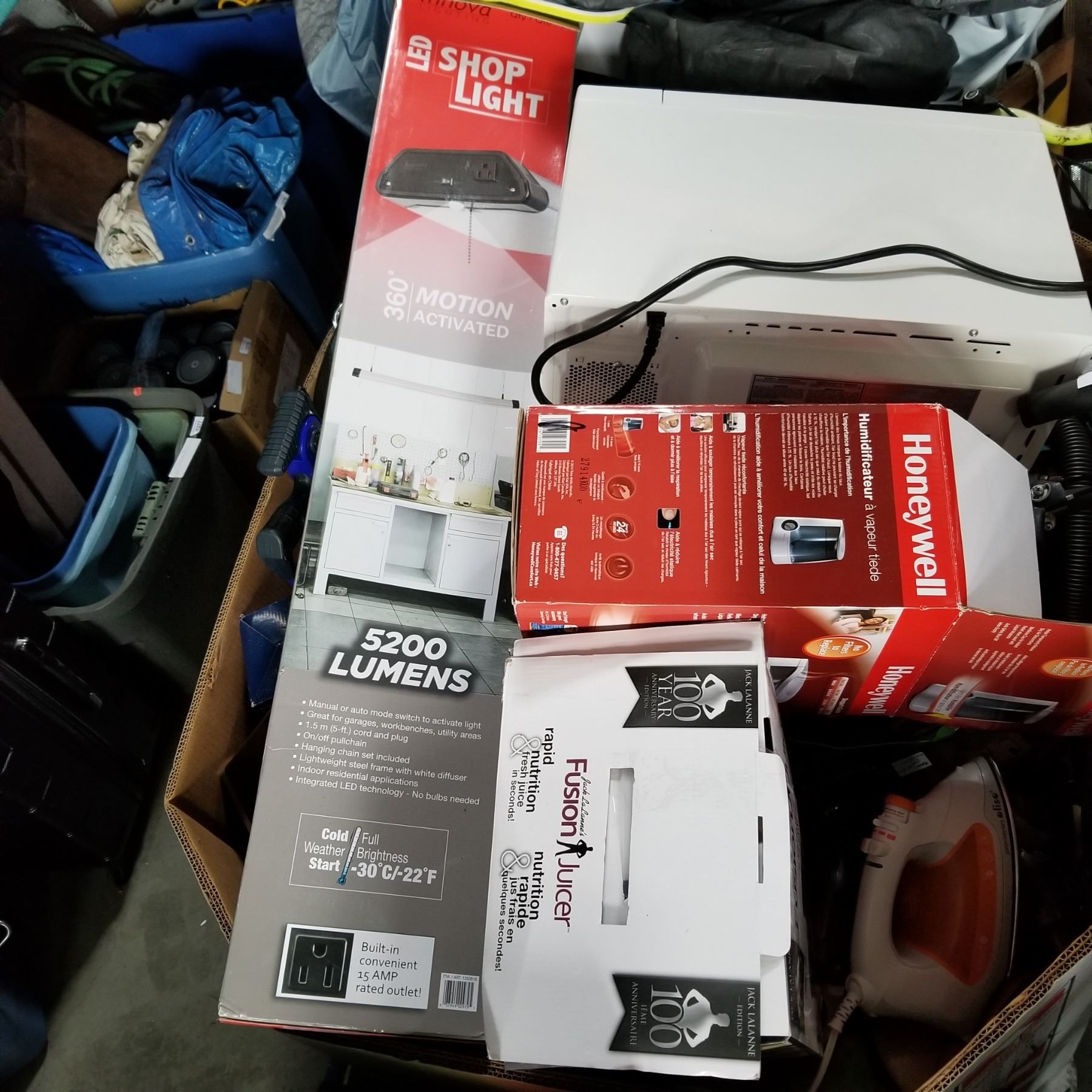 PALLET OF RETURNED ITEMS, SHOP LIGHT, APPLIANCES