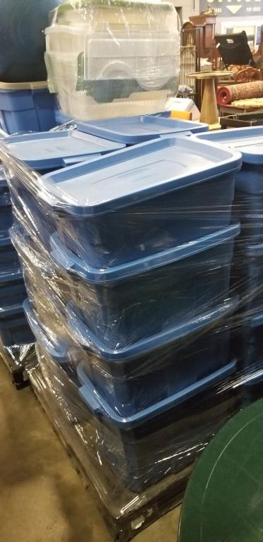PALLET OF RUBBERMAID TOTES FILLED WITH ESTATE GOODS