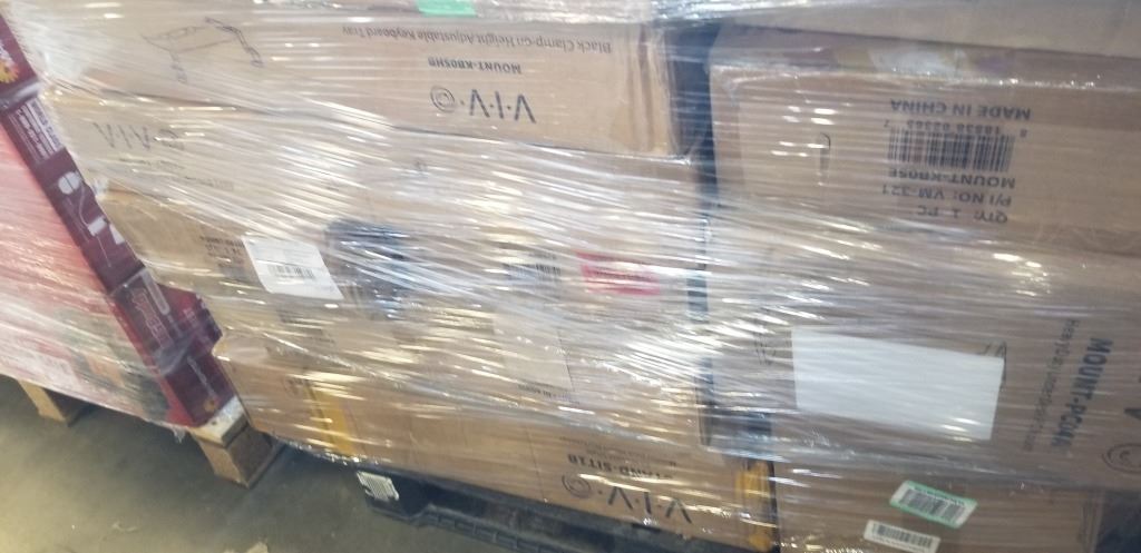 PALLET OF VIVO MOUNTS AND DESK ACCESSORIES