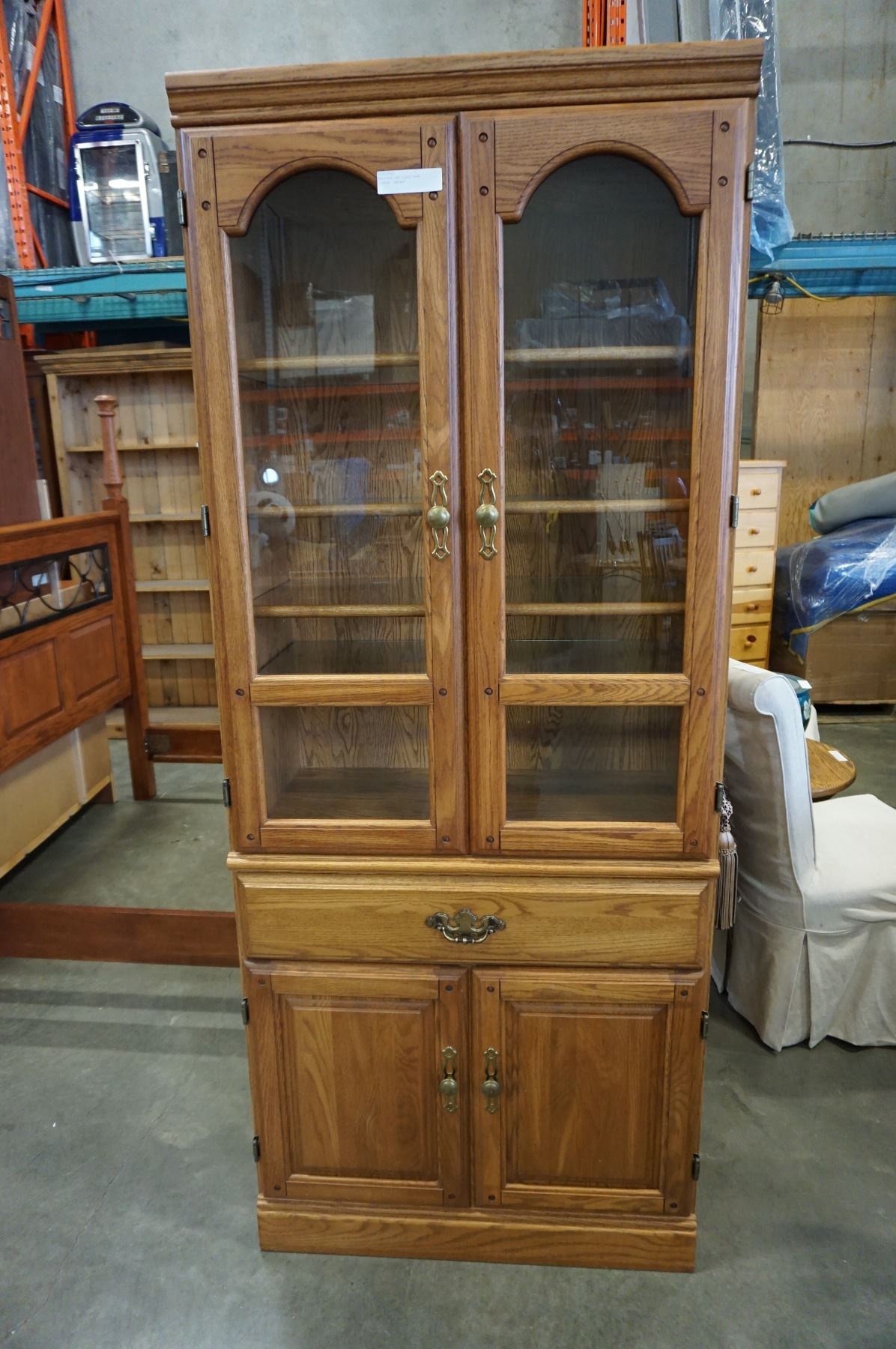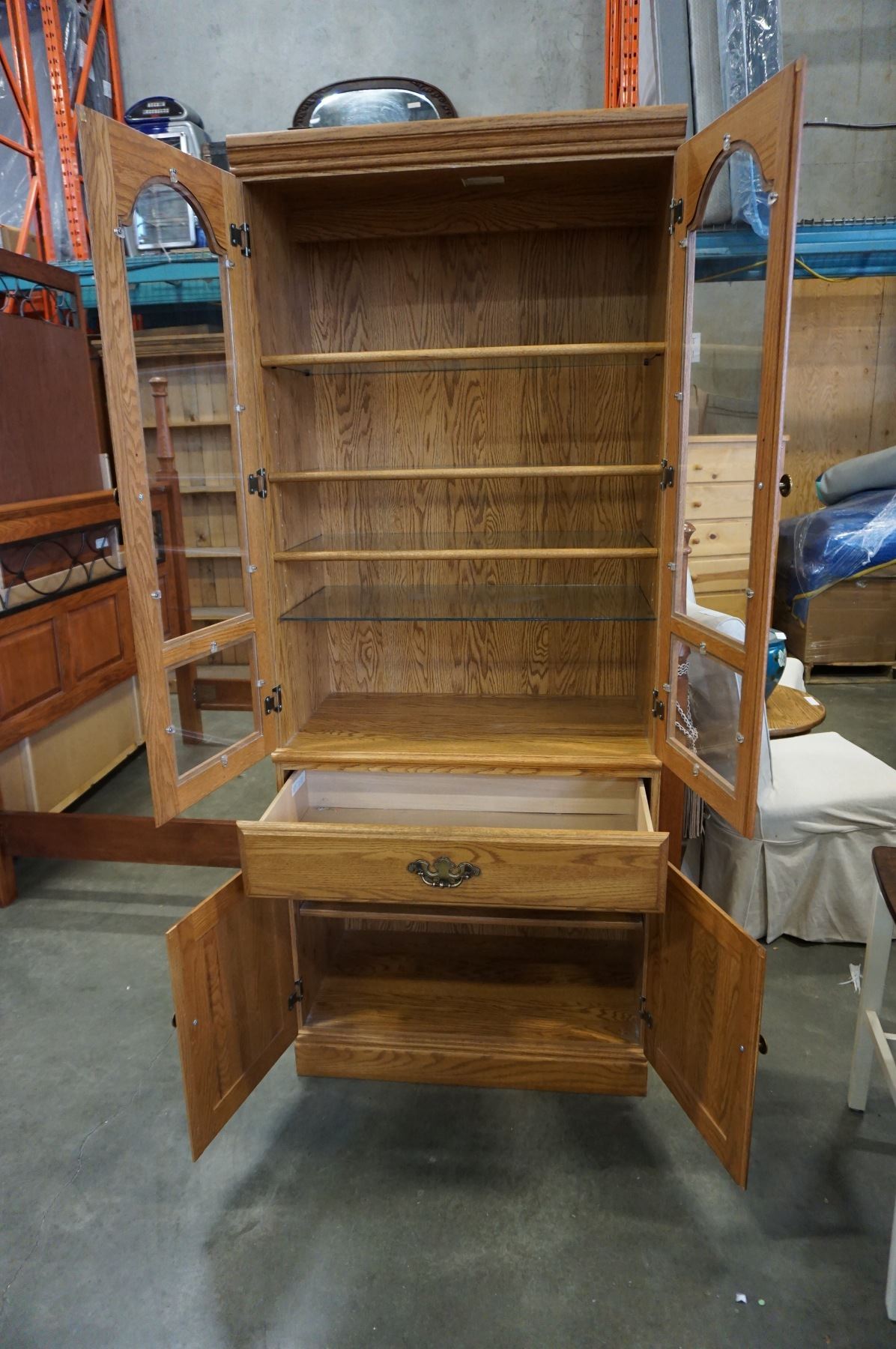 PALLISER OAK GLASS DOOR DISPLAY CABINET