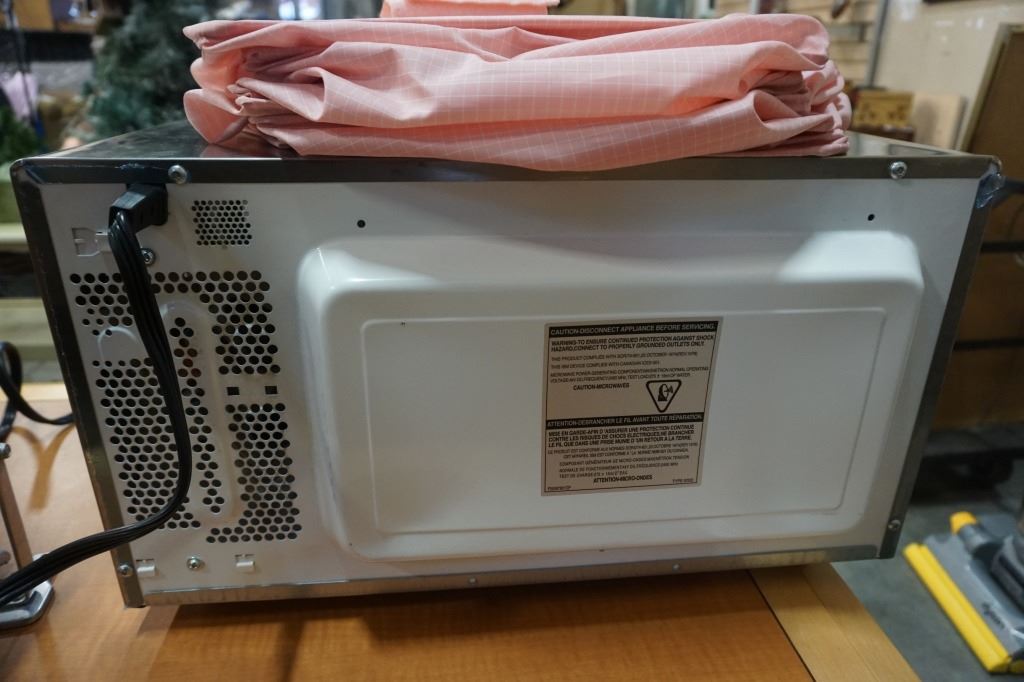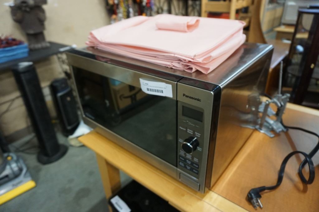 PANASONIC STAINLESS MICROWAVE AND HANGING STORAGE
