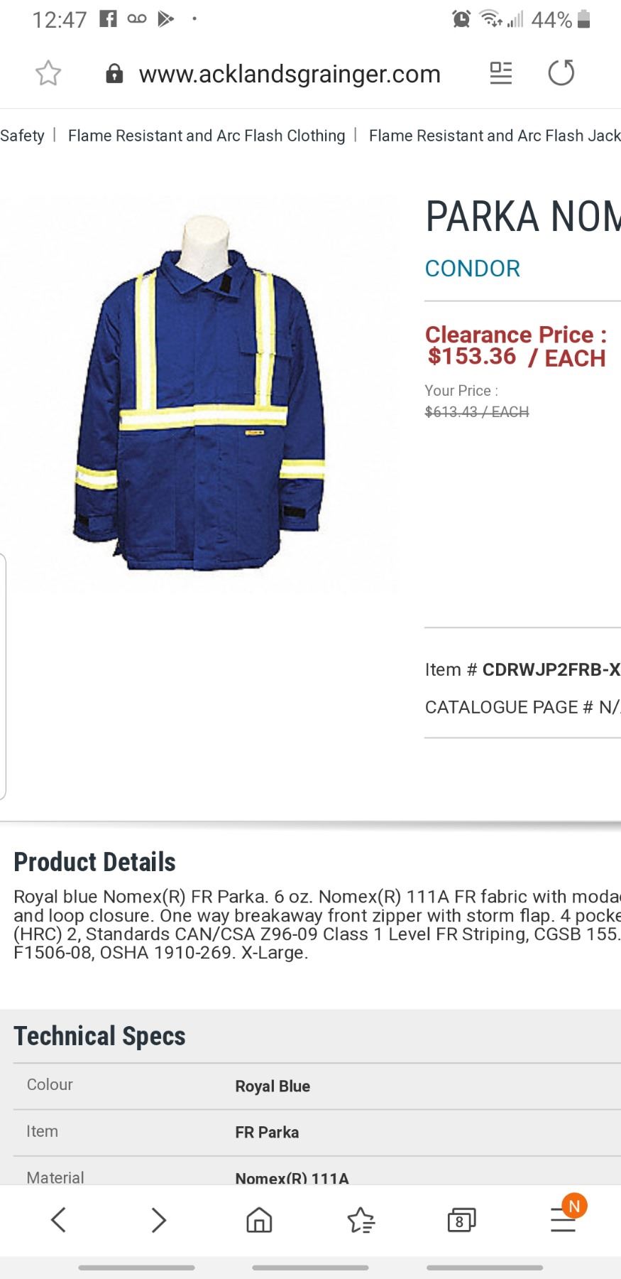 PARKA NOMEX BLUE FLAME RESISTANT W/REFLECTIVE SIZE XL RETAIL $613