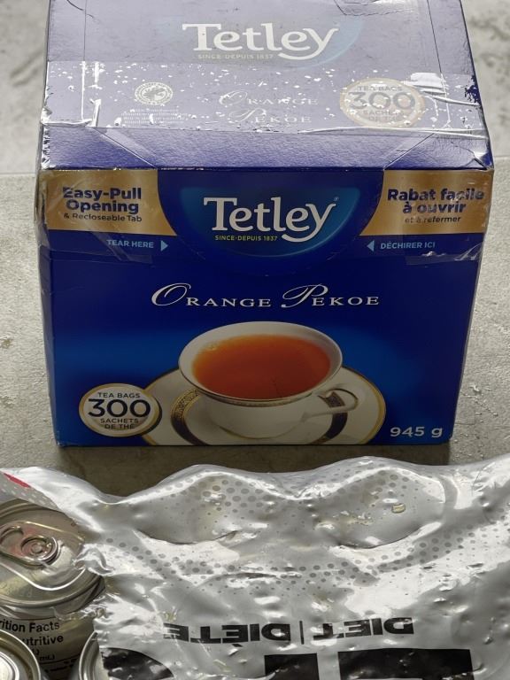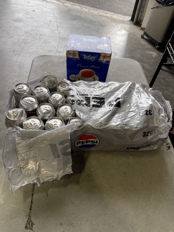 PARTIAL DIET PEPSI FLAT AND TETLEY ORANGE PEKOE TEA