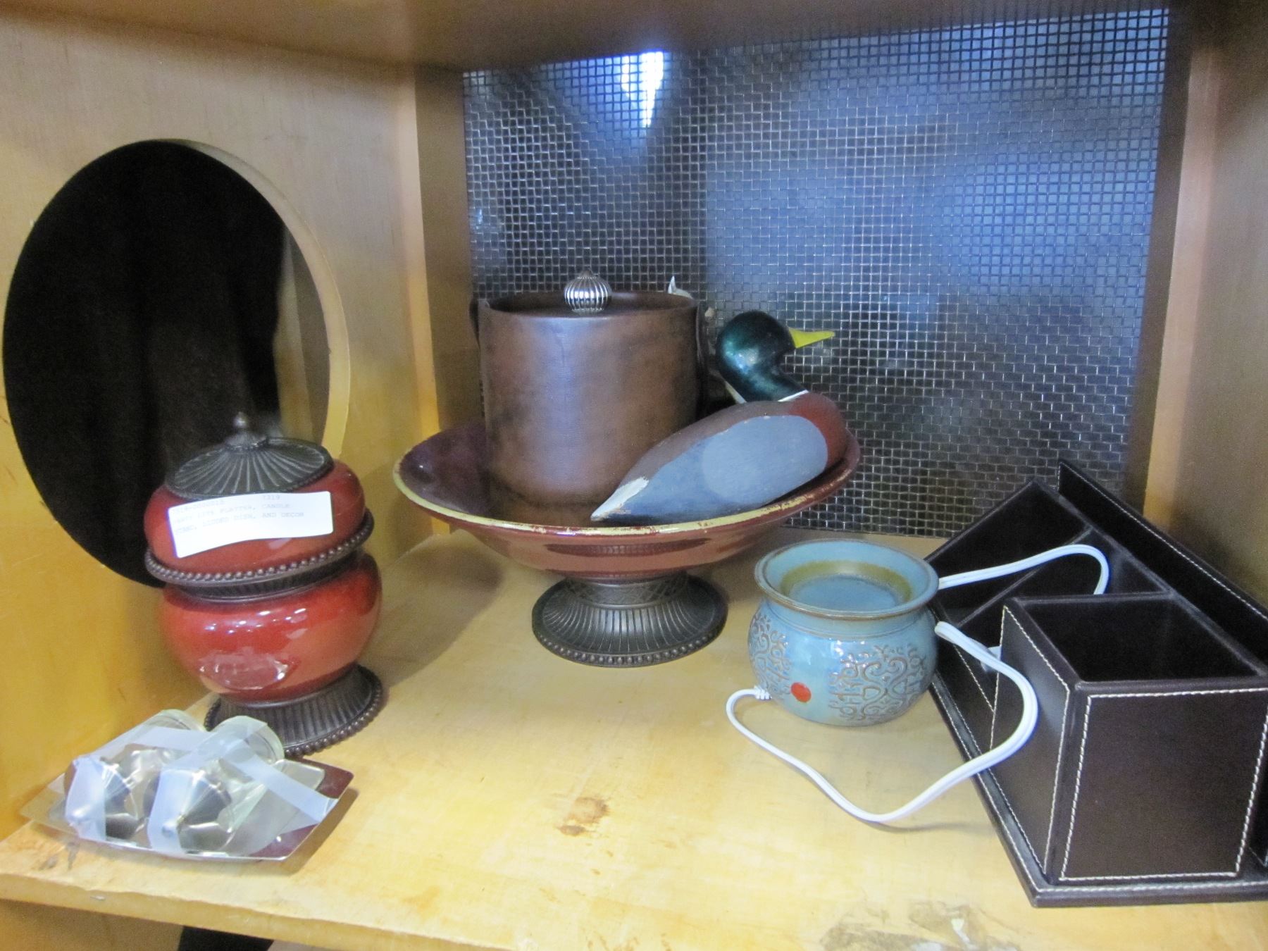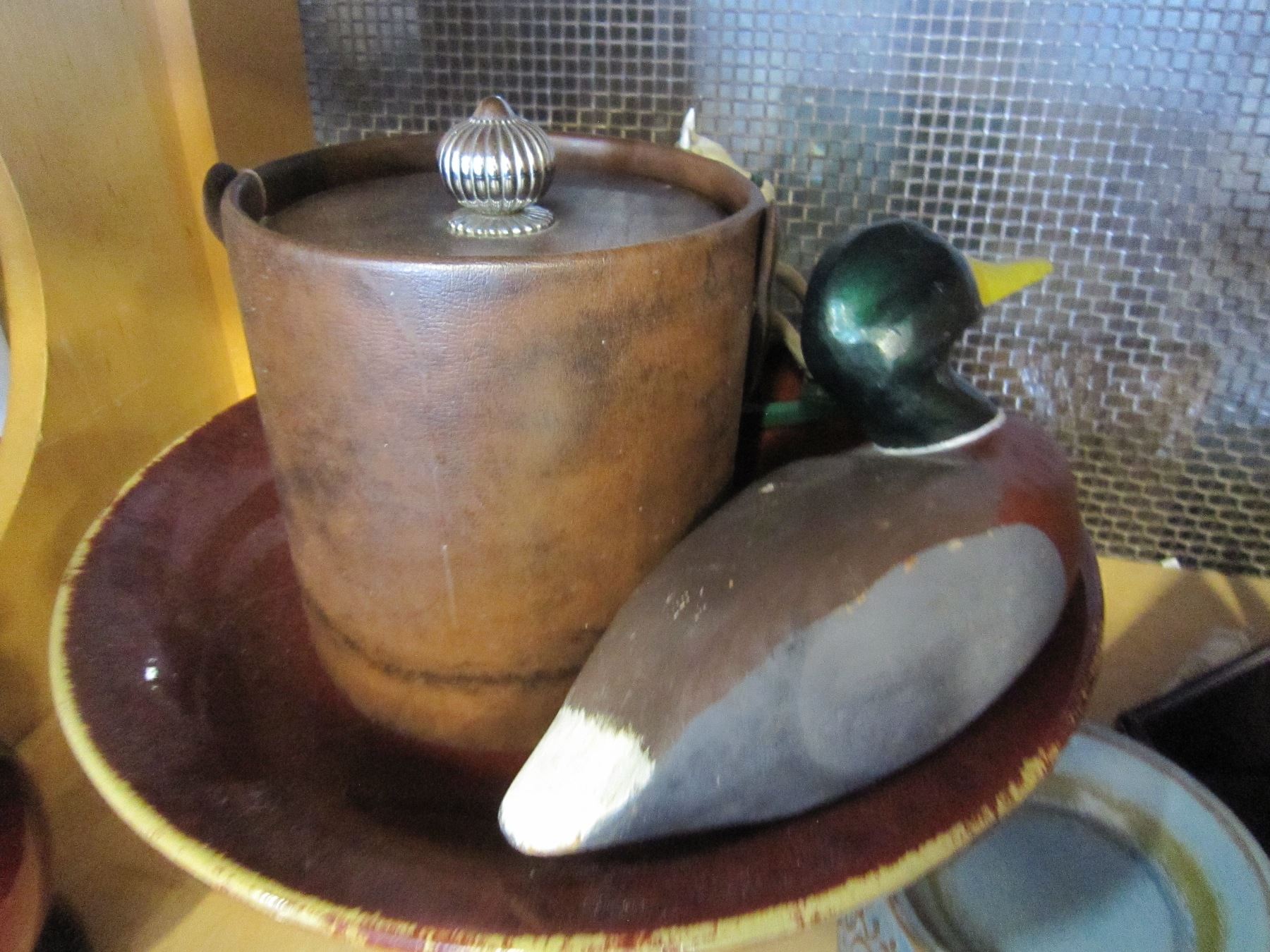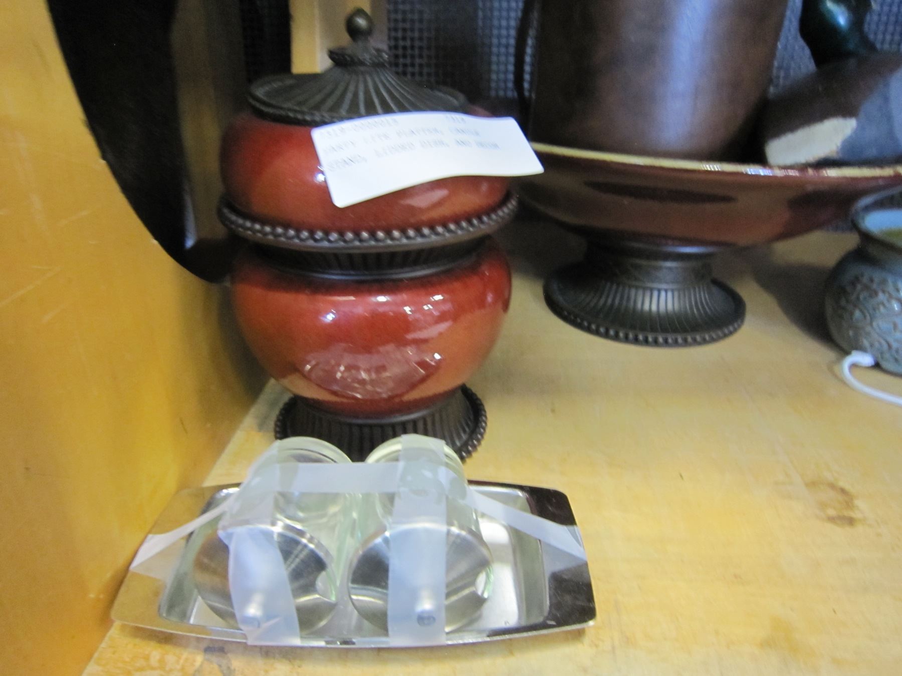 PARTY LITE PLATTER, CANDLE STAND, LIDDED DISH, AND DECOR