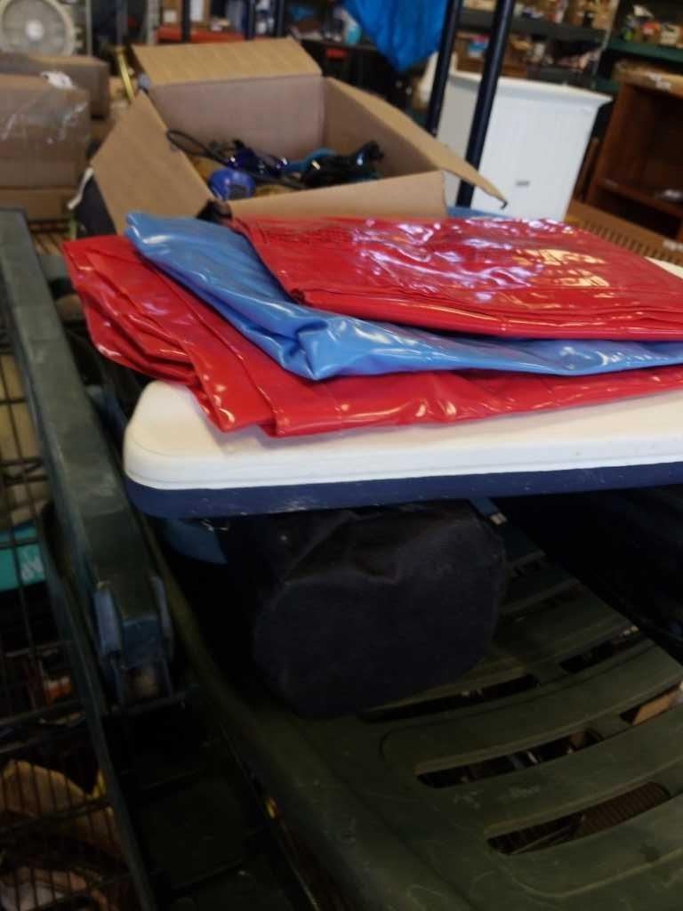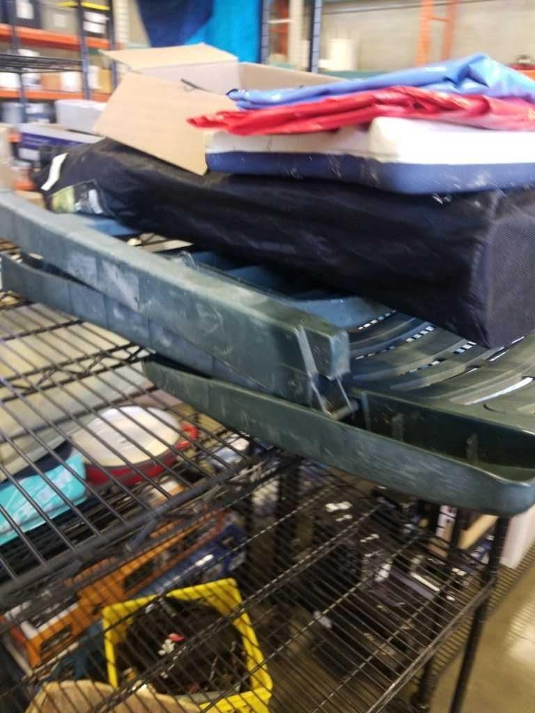 PATIO FOLDING CHAIR, 2 CAMP CHAIRS, WITH FLOATIES AND GOGGLES