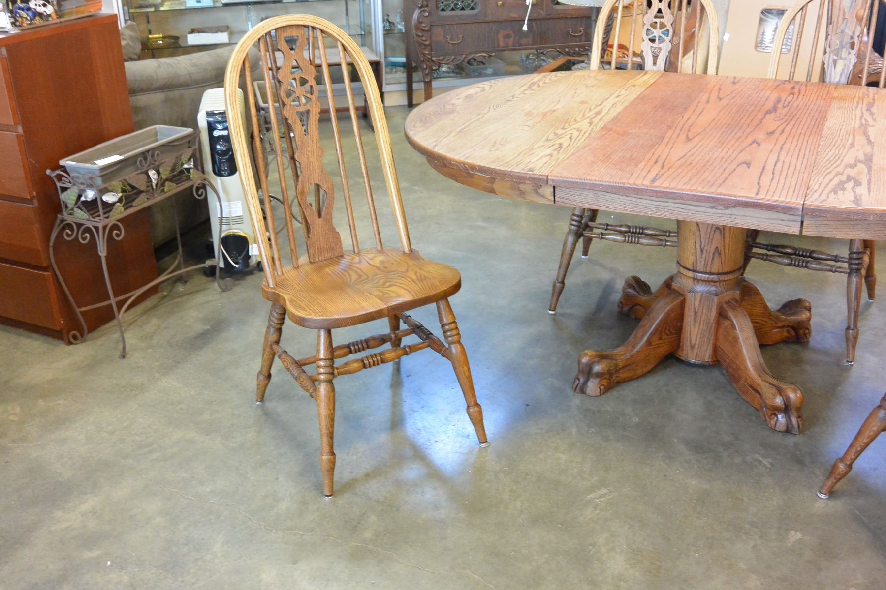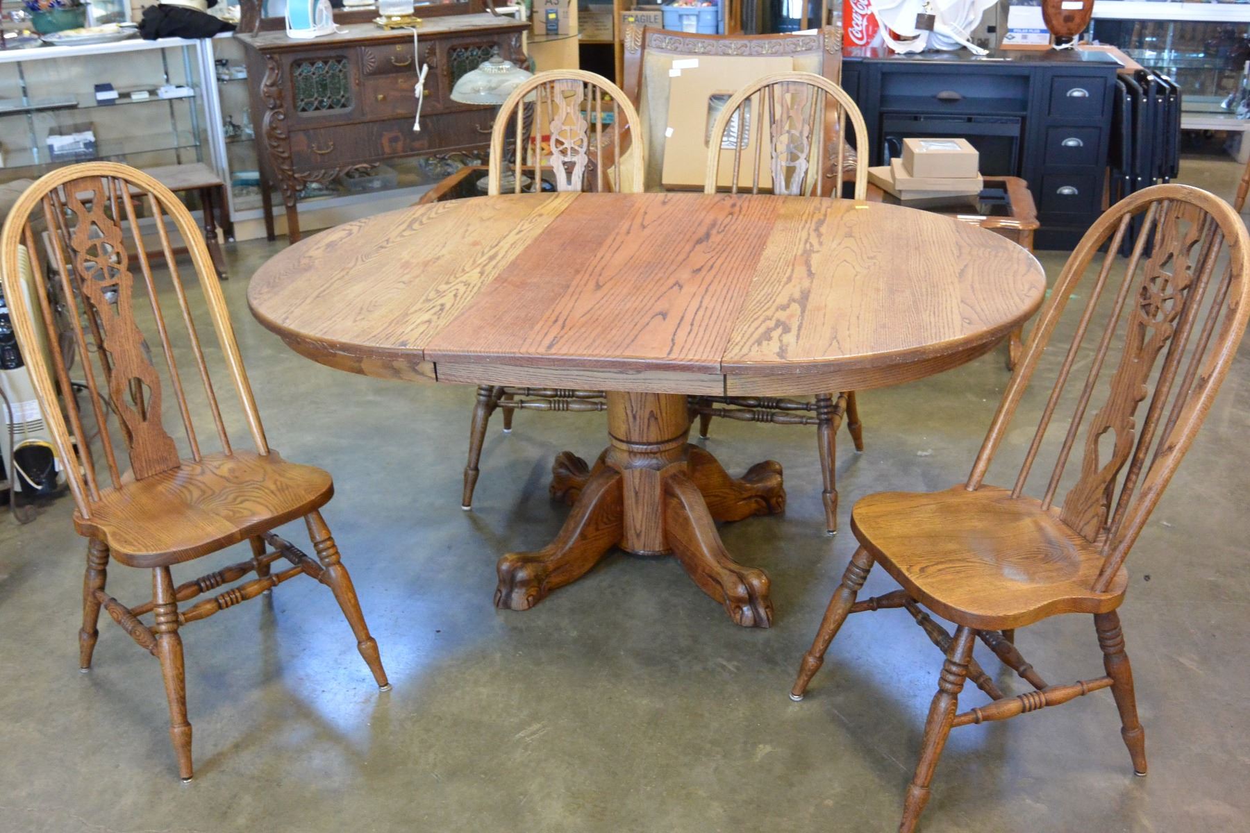 PAW FOOT PEDESTLE TABLE AND FOUR HOOPBACK CHAIRS