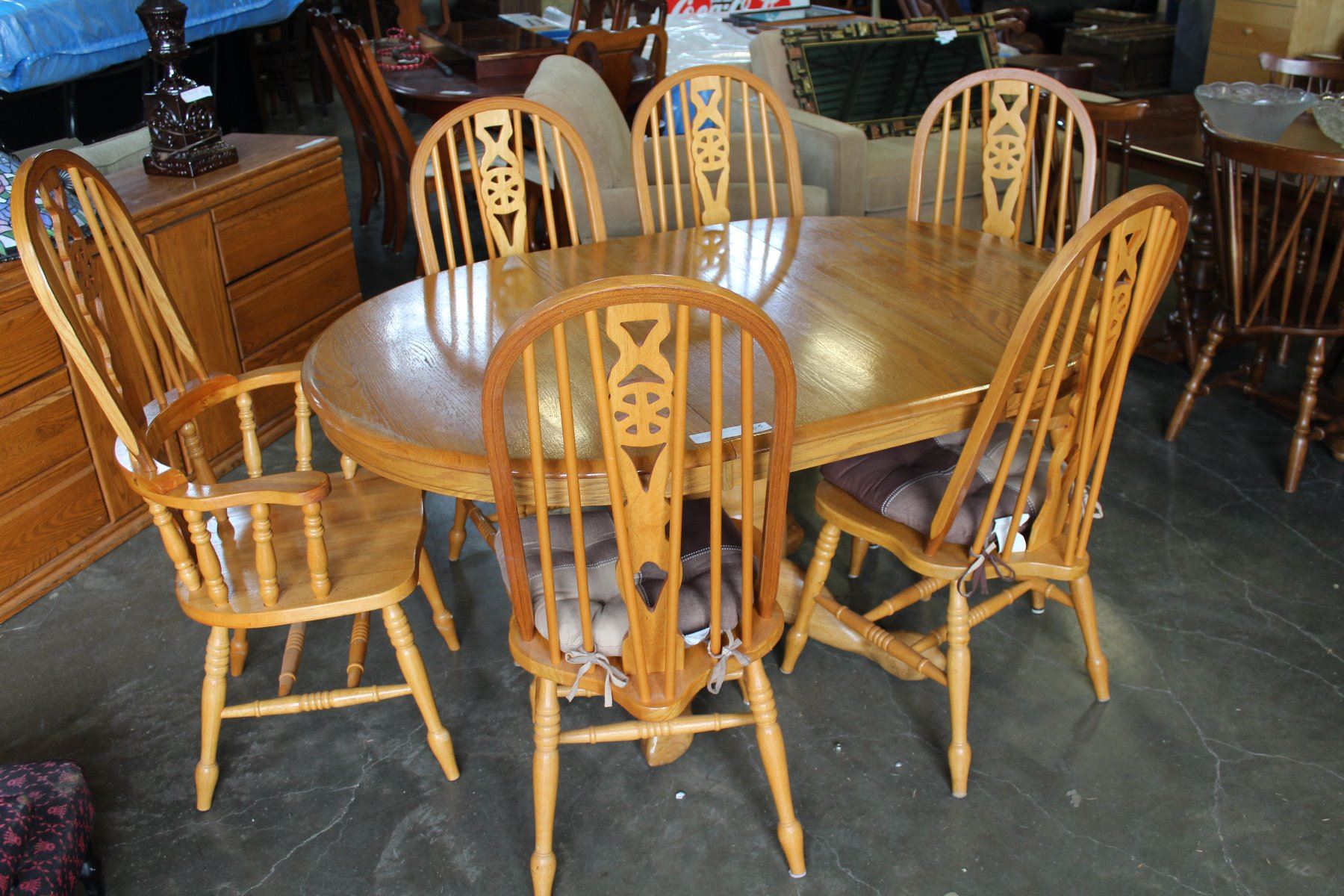 PAWFOOT OAK TABLE WITH LEAF AND 6 CHAIRS