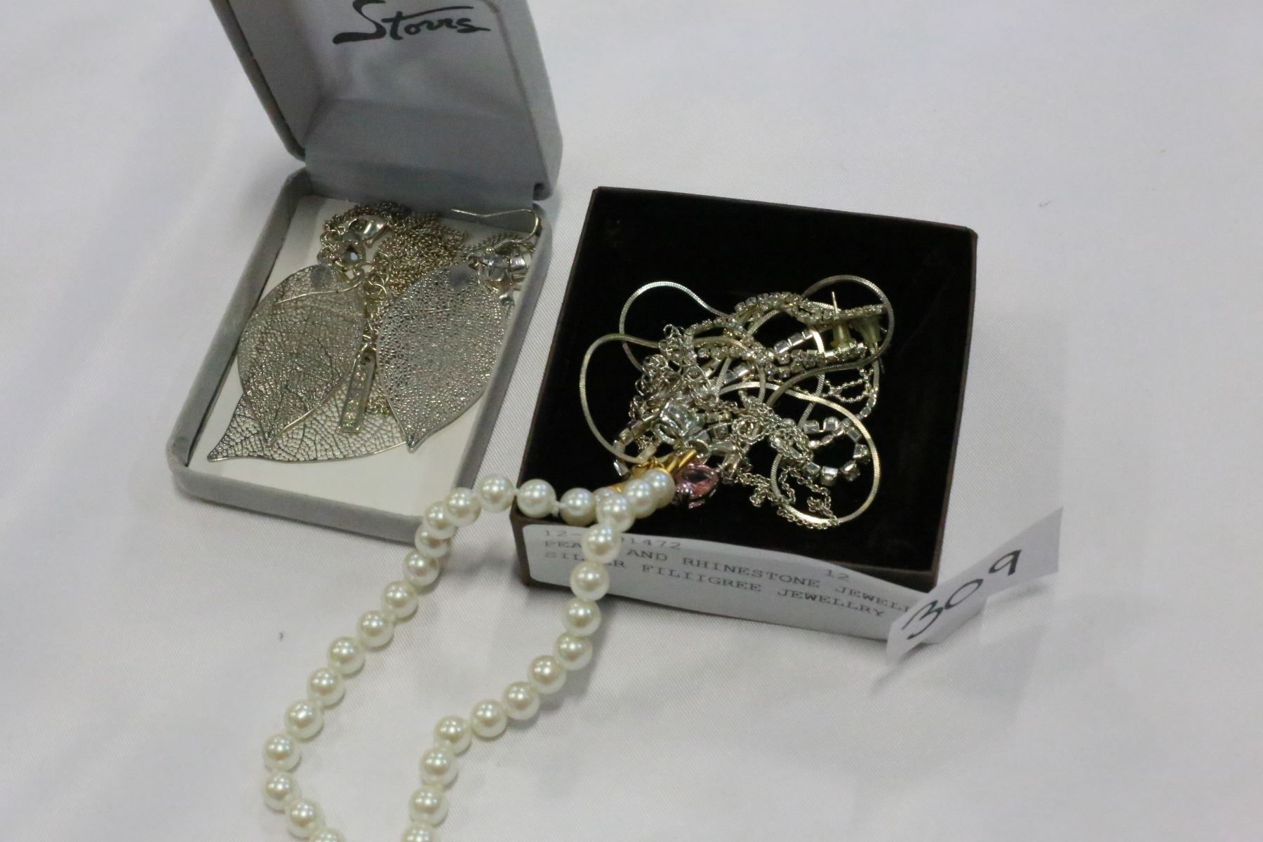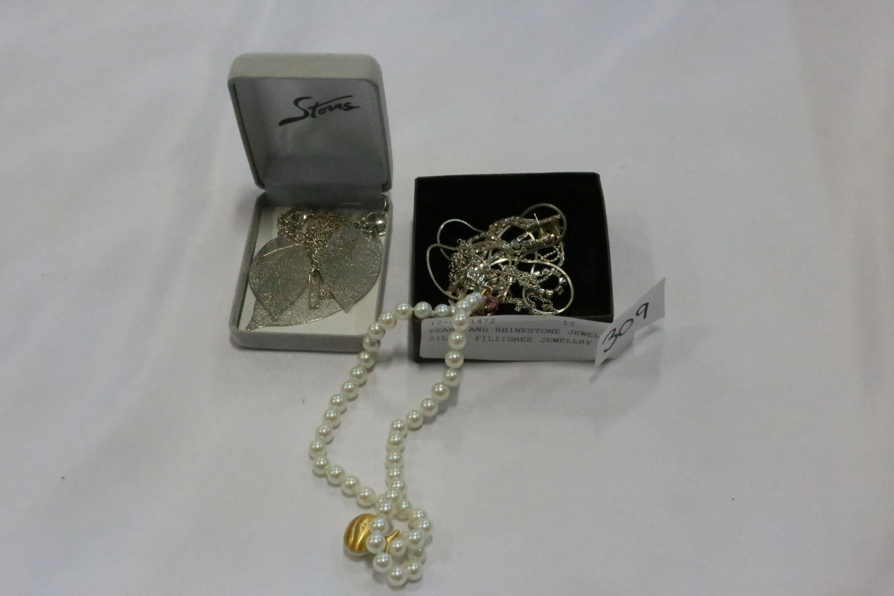 PEARL AND RHINESTONE JEWELLRY SILVER FILIIGREE JEWELLRY