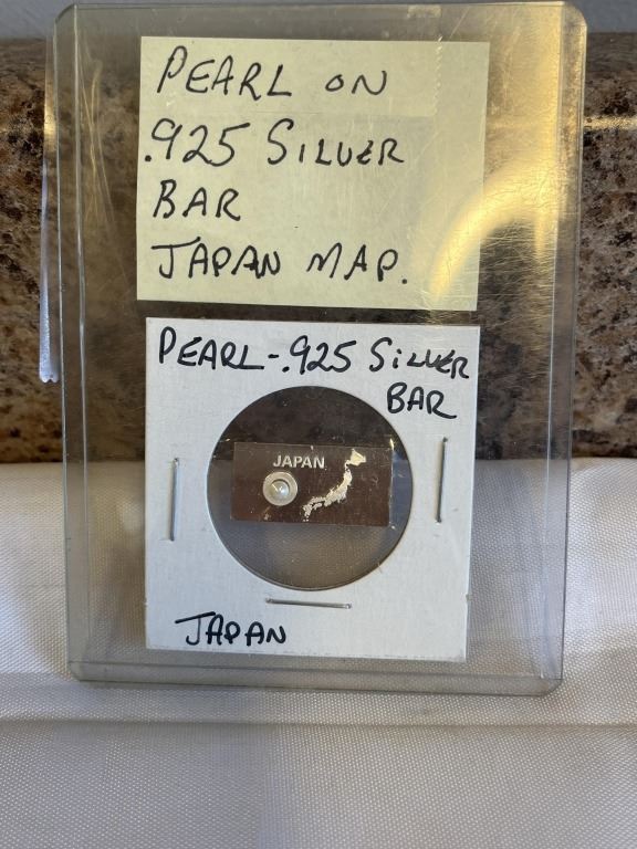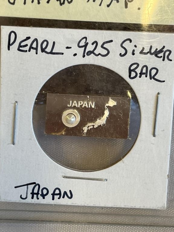PEARL ON .925 SILVER BAR W/ MAP OF JAPAN
