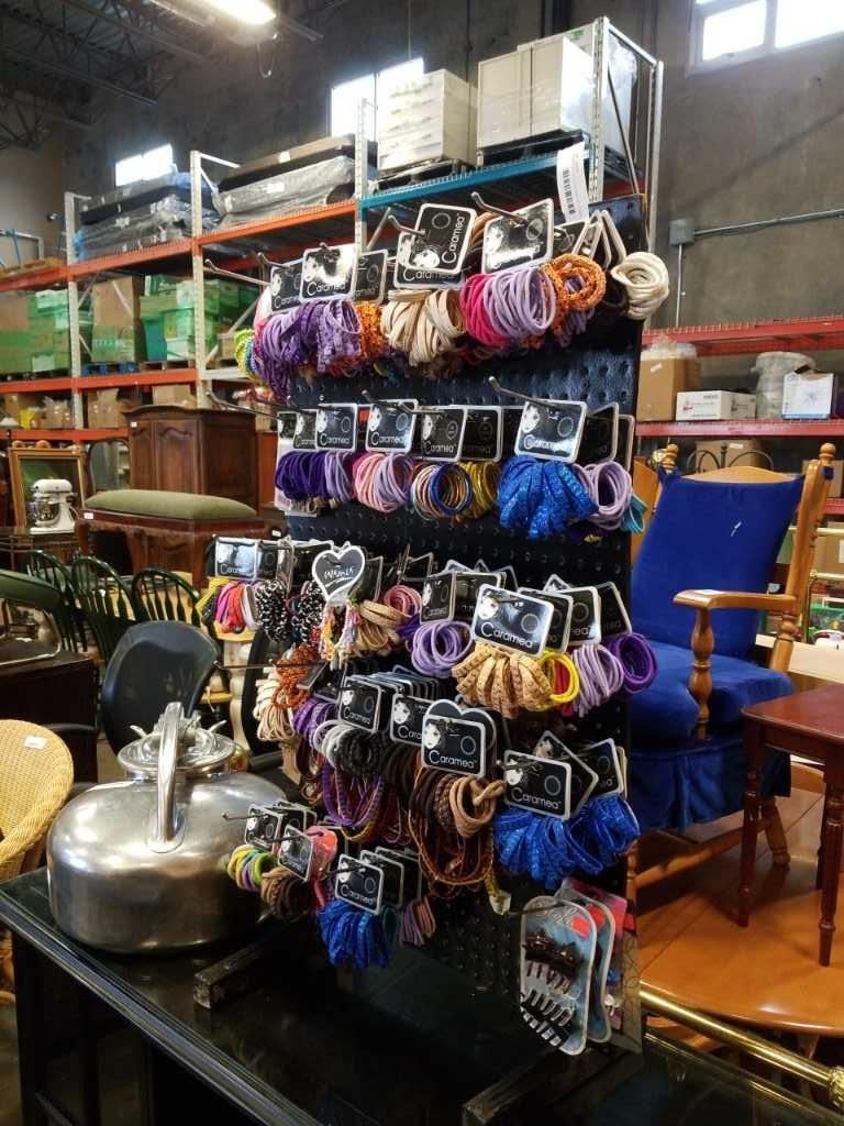 PEGBOARD DISPLAY STAND WITH HAIR TIES, CLIPS