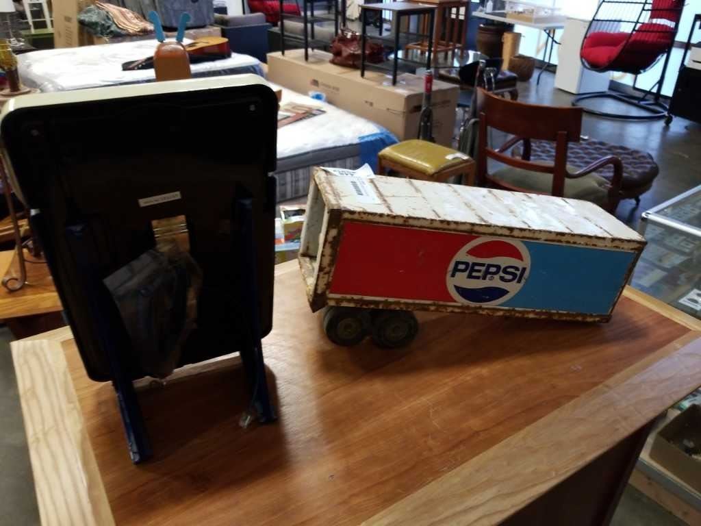 PEPSI VINTAGE METAL TRAILER AND PHONE