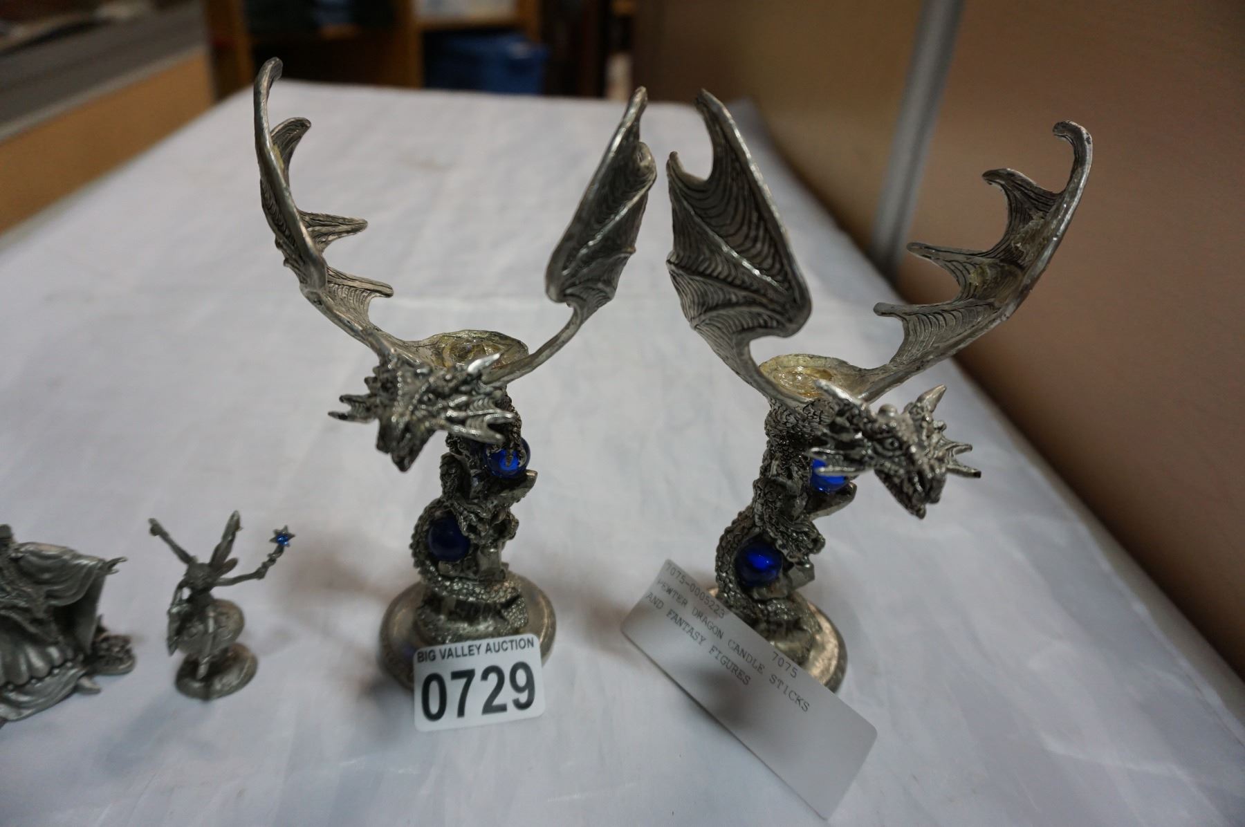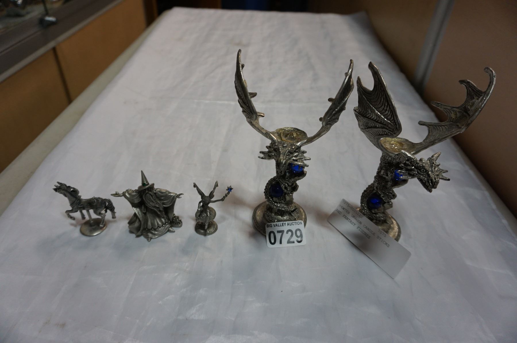 PEWTER DRAGON CANDLE STICKS AND FANTASY FIGURES