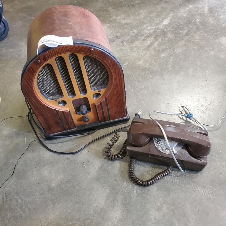 PHILCO REPRODUCTION TABLE TOP RADIO AND VINTAGE ROTARY PHONE