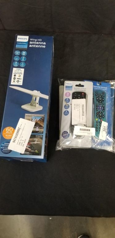 PHILIPS HD WING INDOOR/OUTDOOR TV ANTENNA AND 5 PHILIPS REMOTES