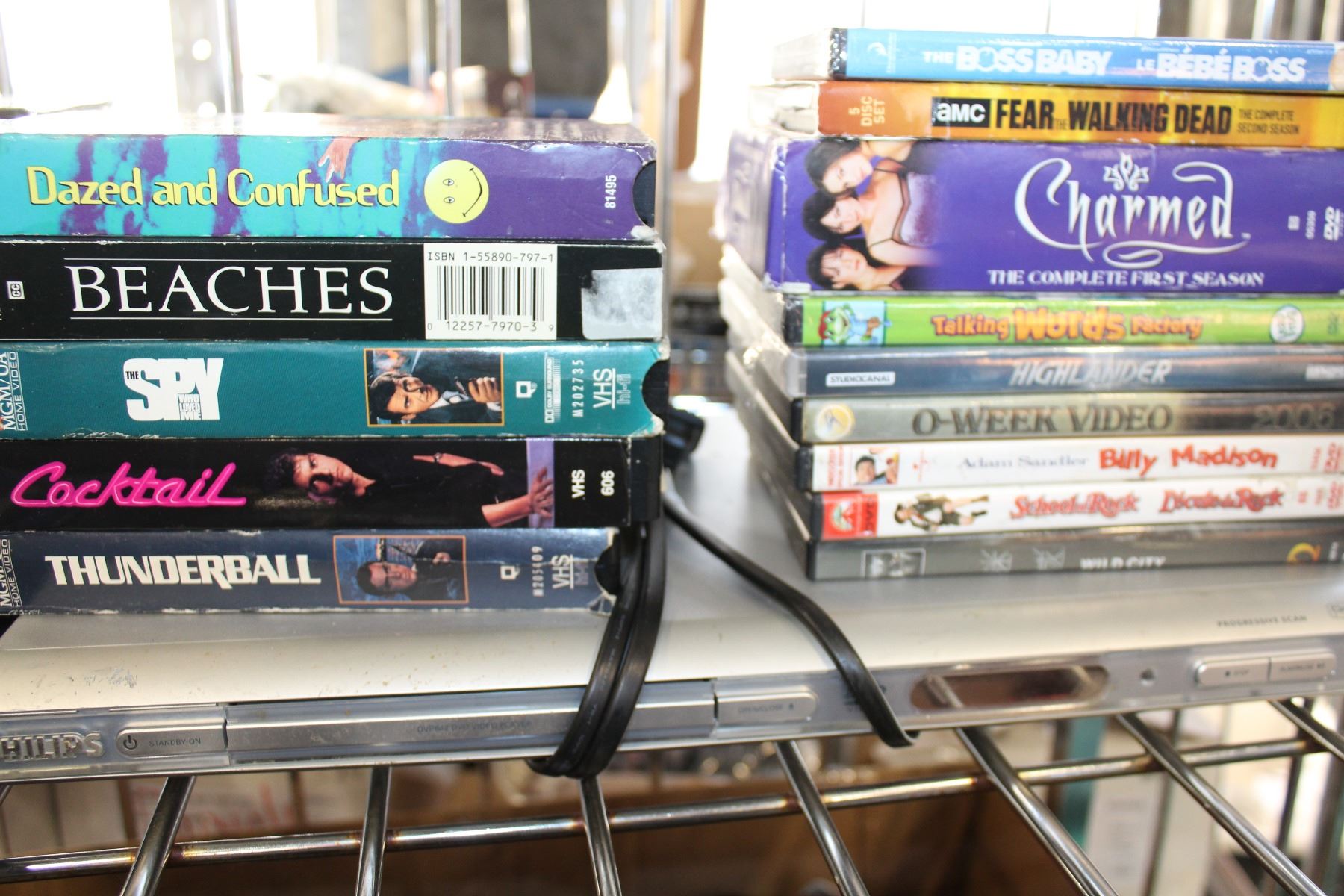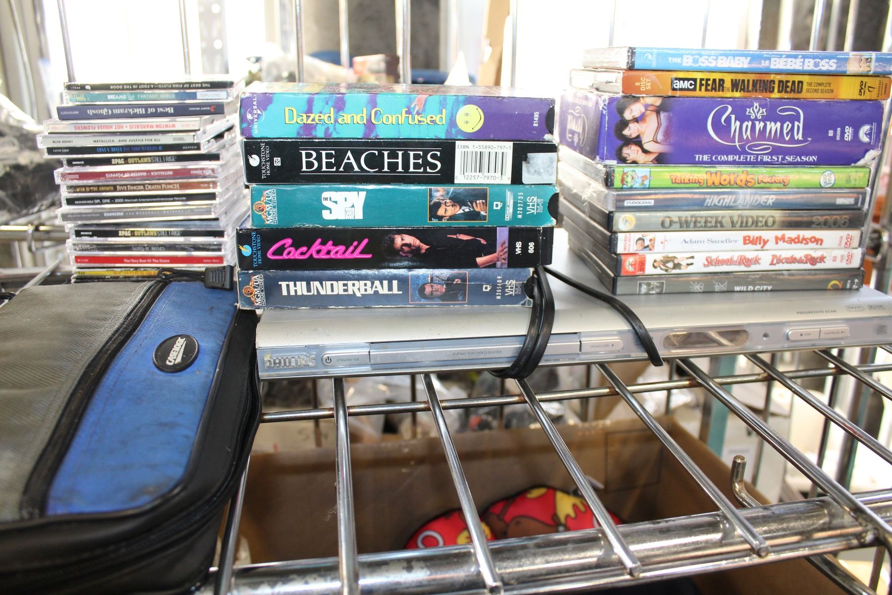 PHILLIPS DVD PLAYER AND DVDS AND CDS