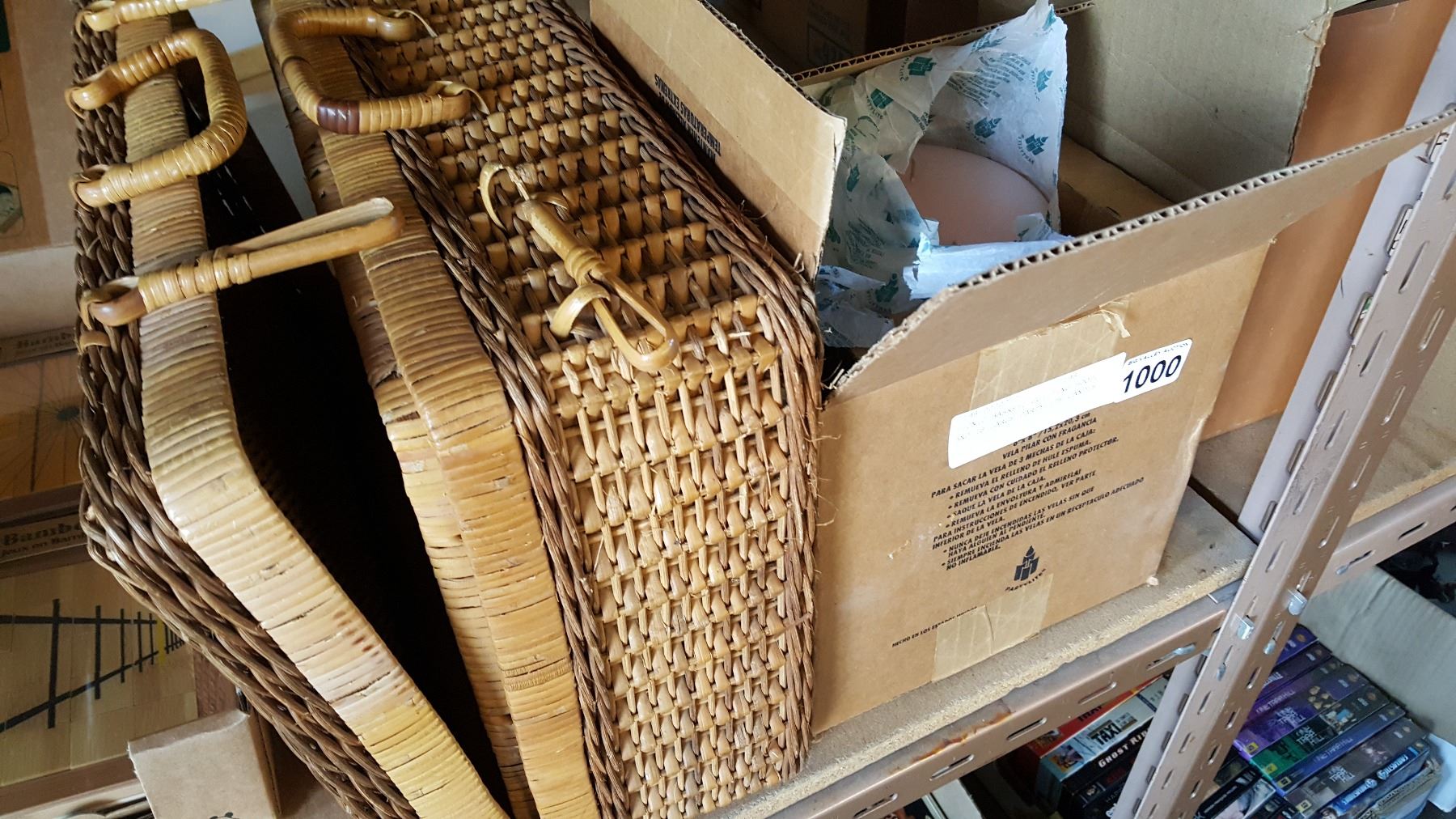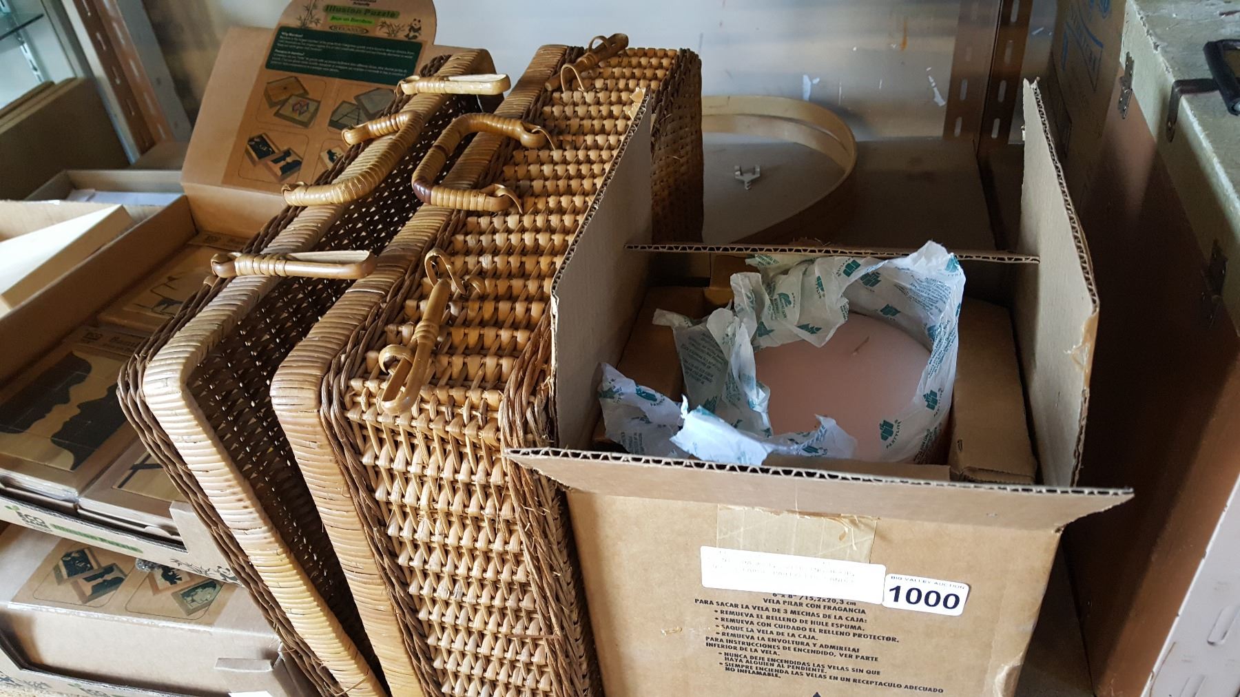 PICNIC BASKET, GUILTING HOOP, AND 1S LARGE PARTYLITE CANDLE