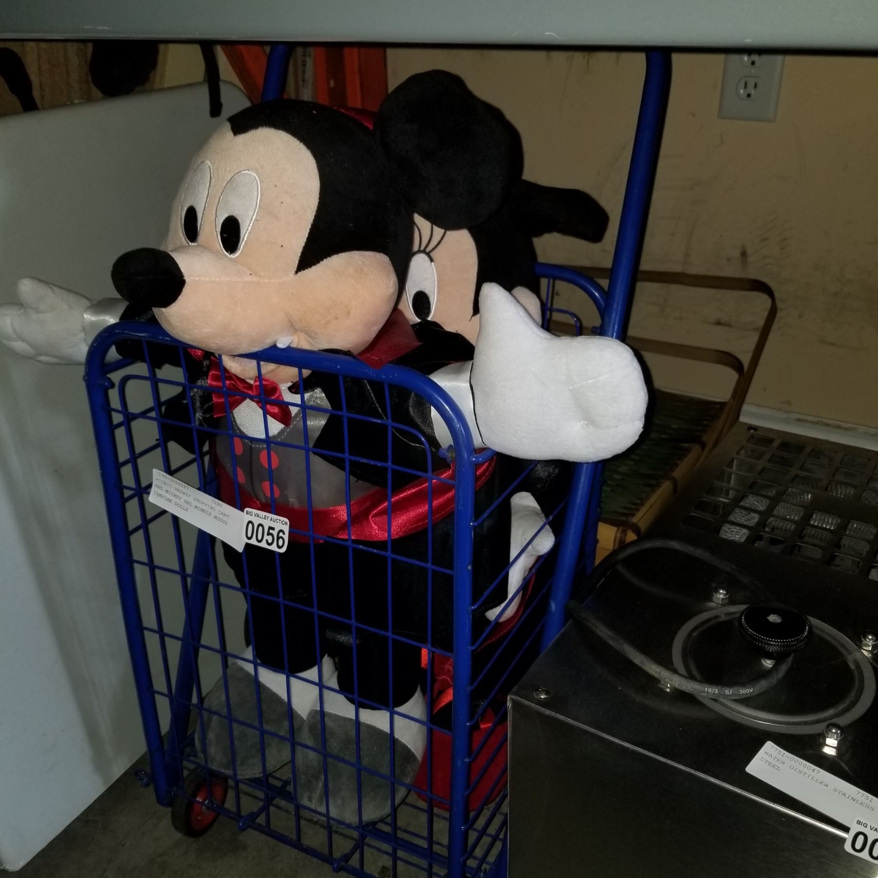 PICNIC BASKET SHOPPING CART AND MICKEY AND MINNIE MOUSE VAMPIRE DOLLS