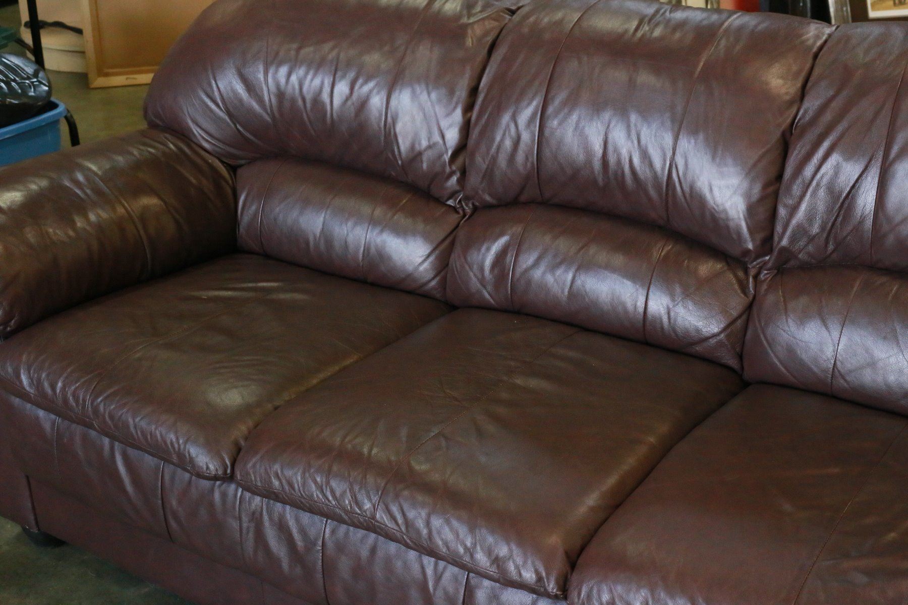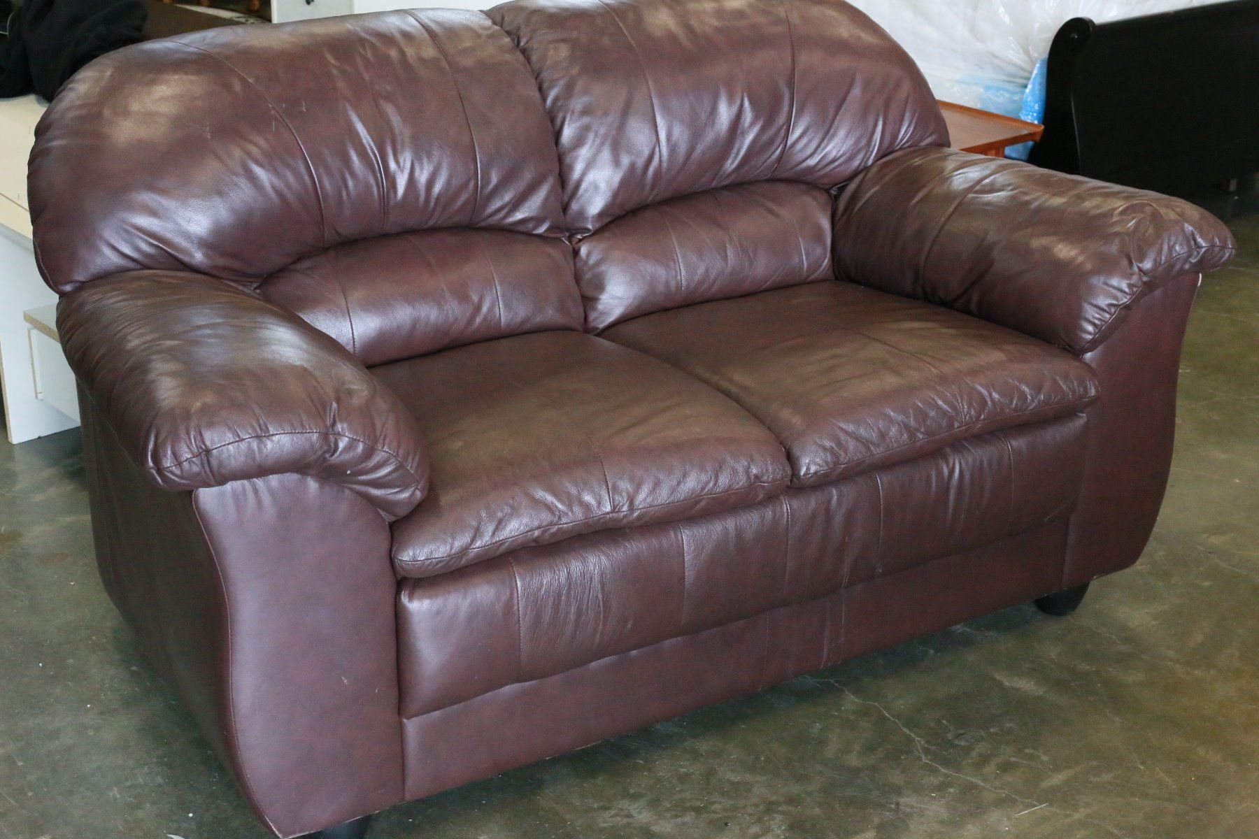 PILLOW BACK LEATHER SOFA AND LOVESEAT